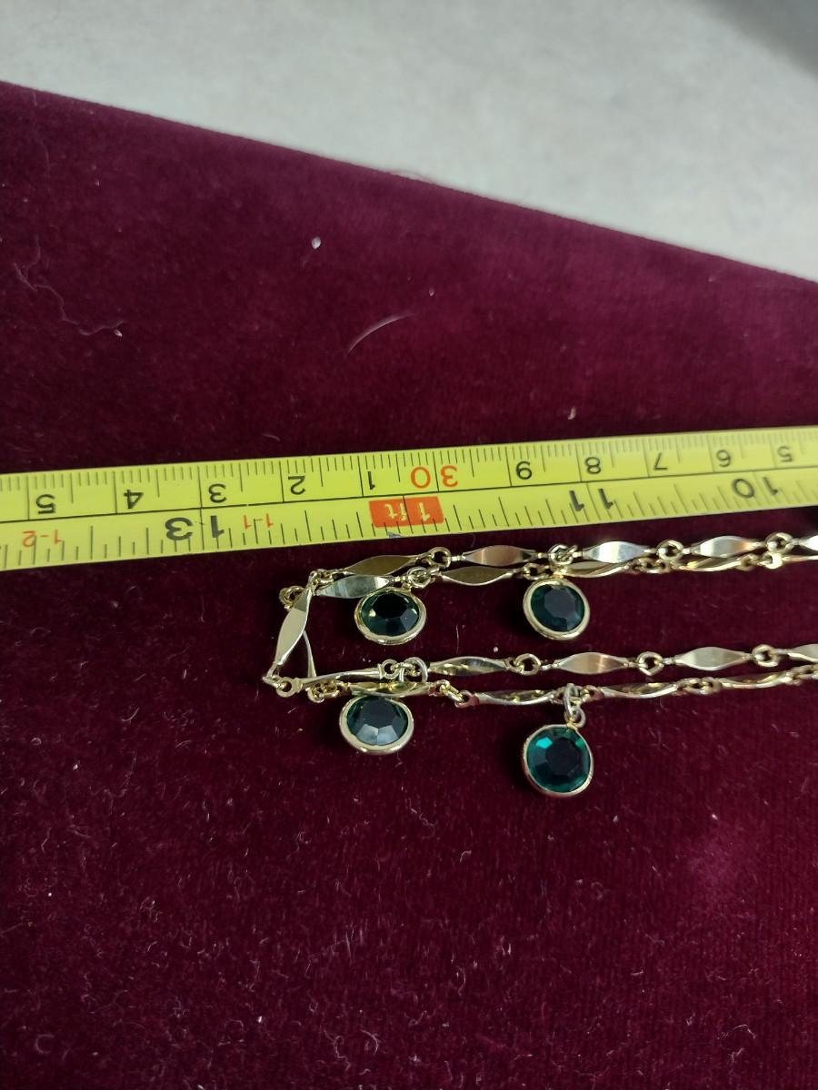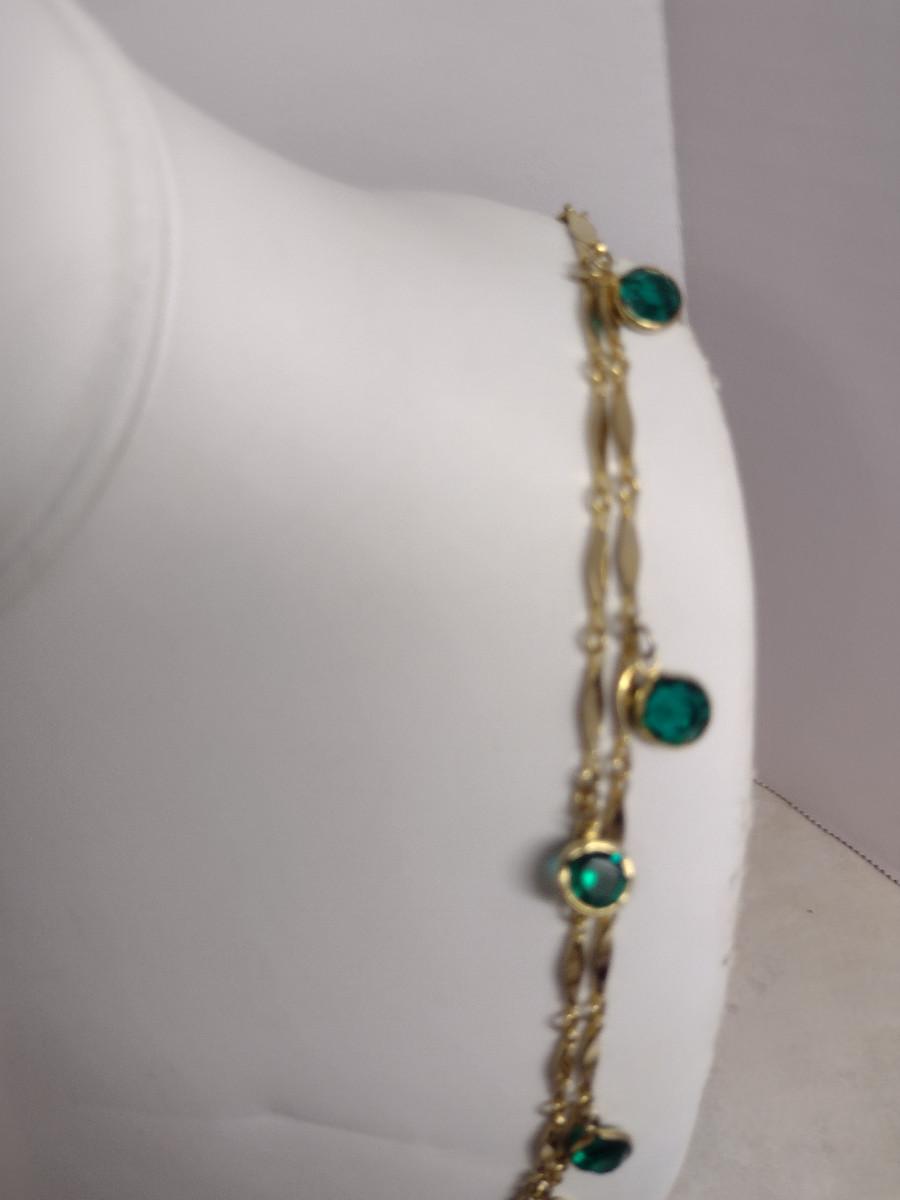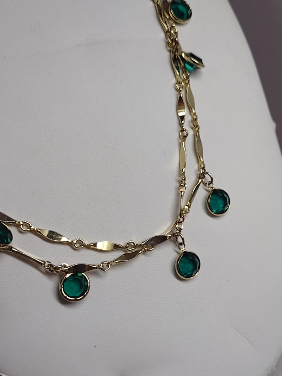 Gold Tone Necklace with Green Glass Accents- Approx 50" Long (#29)