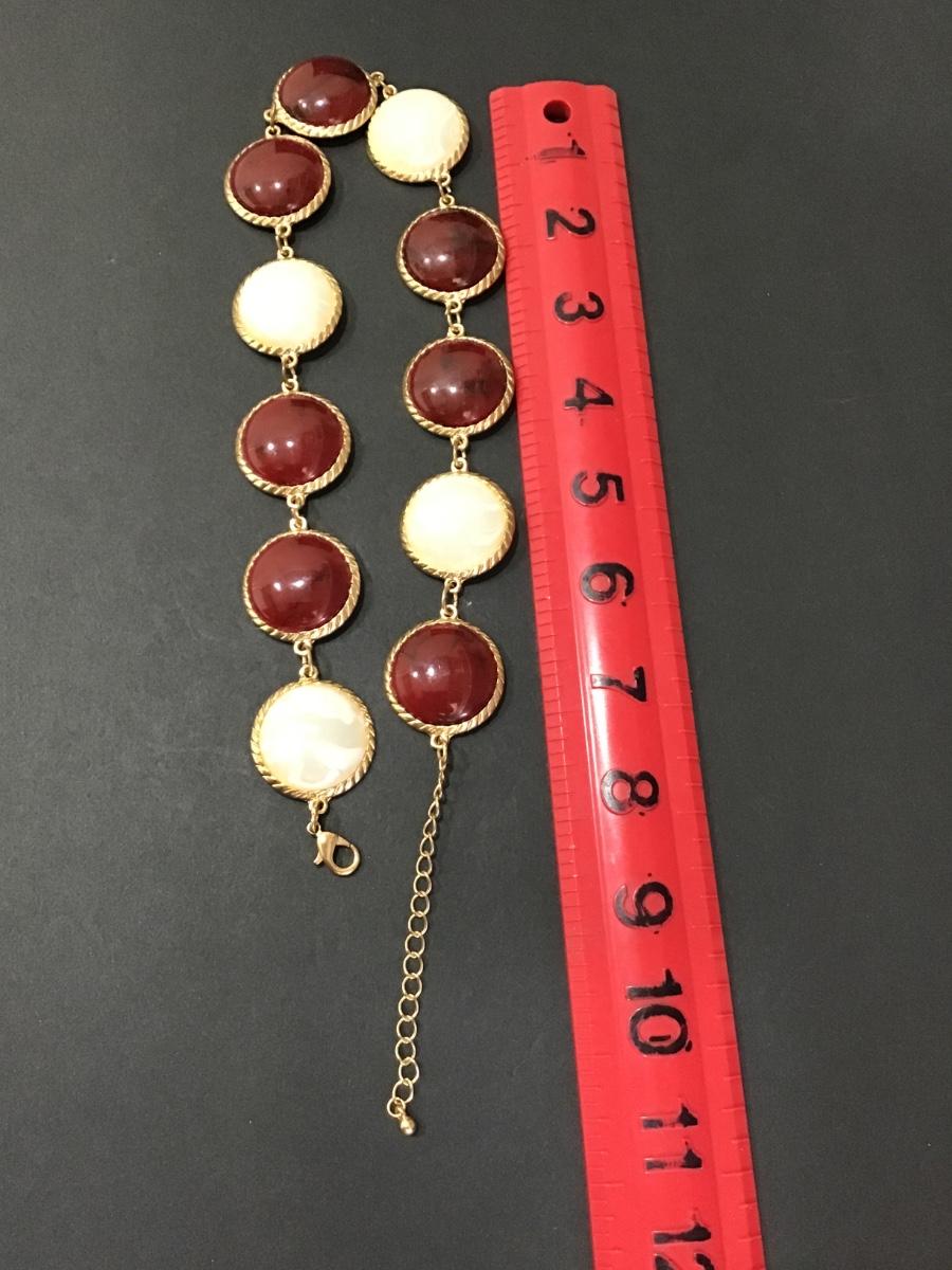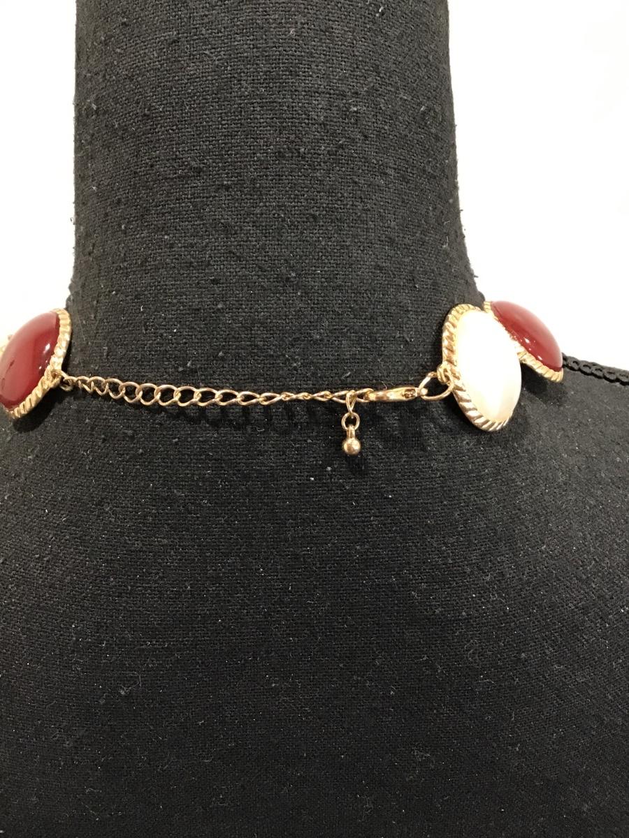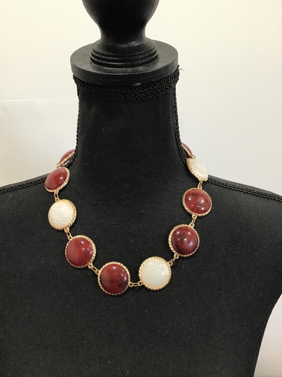 Gold tone necklace with white and maroon Cabachon