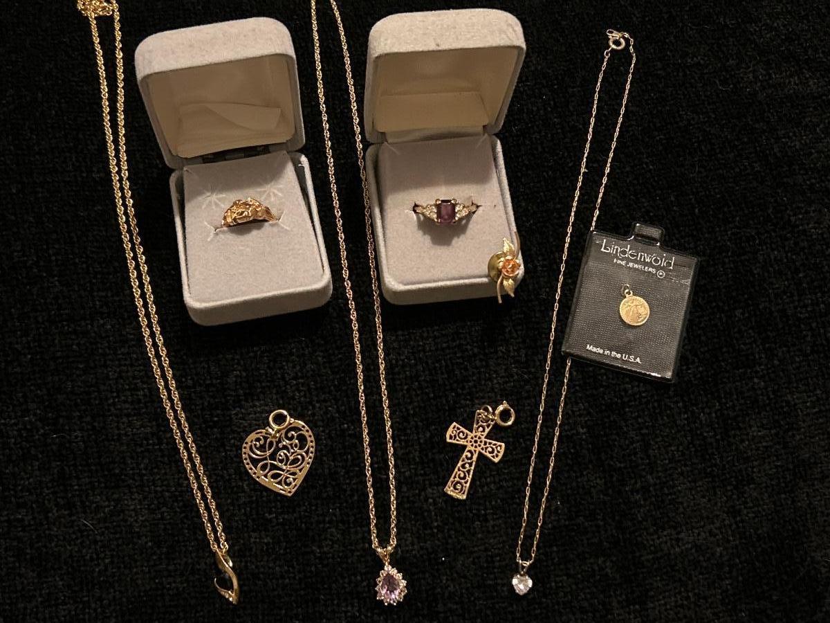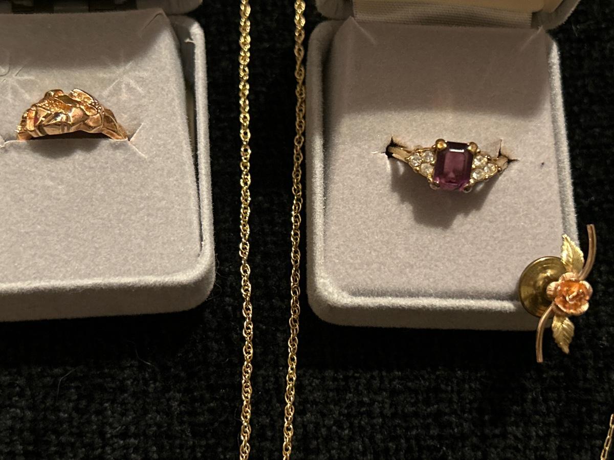 I couldn’t find stamps on these items. 1 pin in the purple ring box.