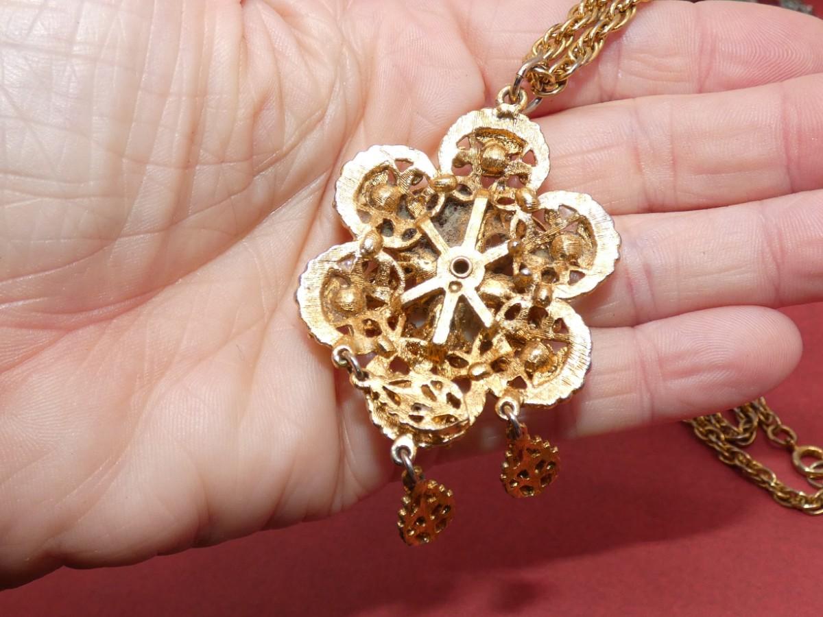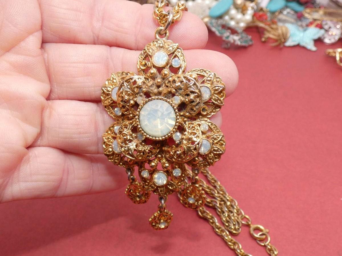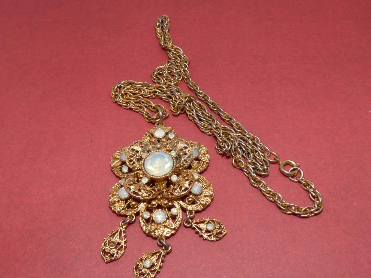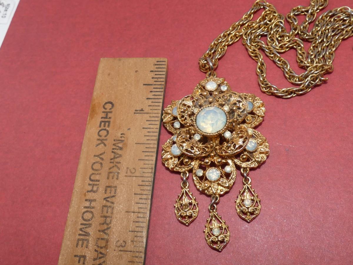 Gold Tone Opalescent Pendant Necklace - missing stones