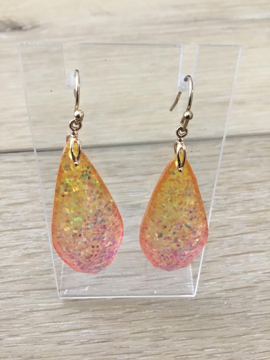 Gold tone orange dangle earrings