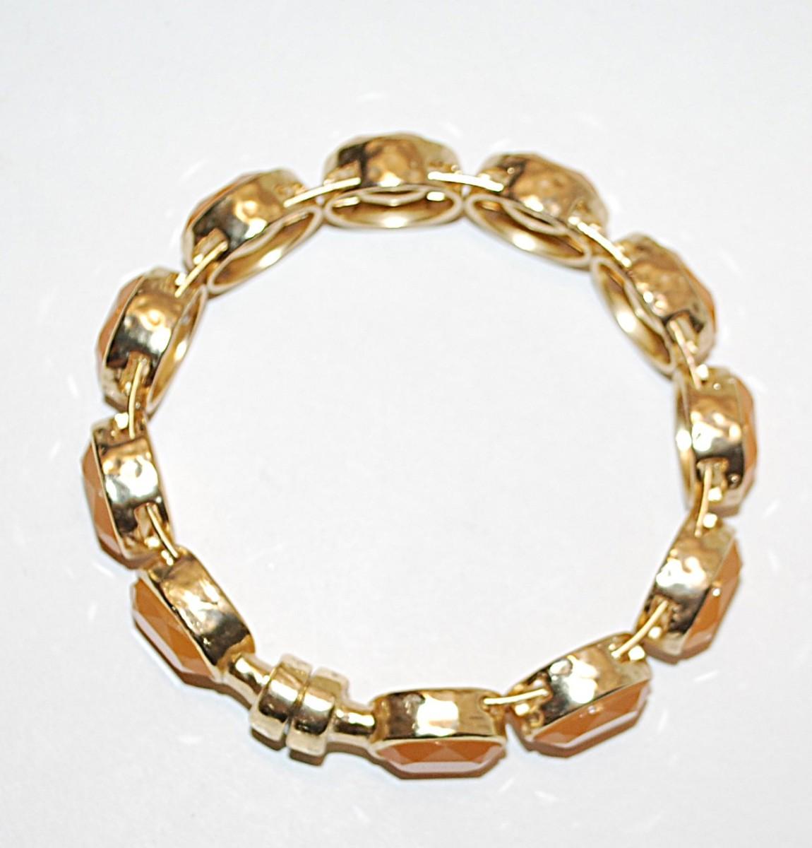 Gold Tone ORANGE OVALS MAGNETIC BRACELET (2⅛" Opening) with Cupped Stones & Solid Magnet Closure