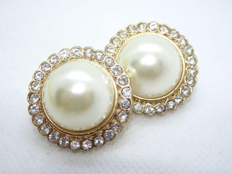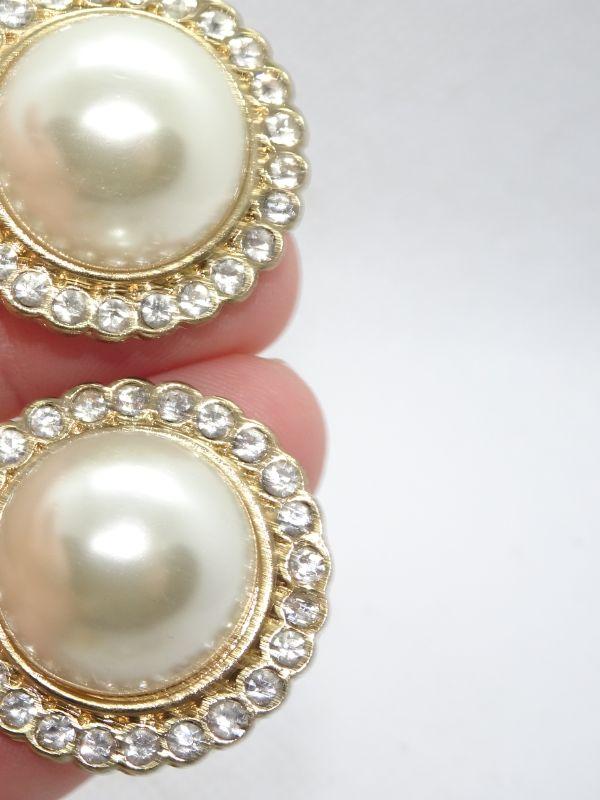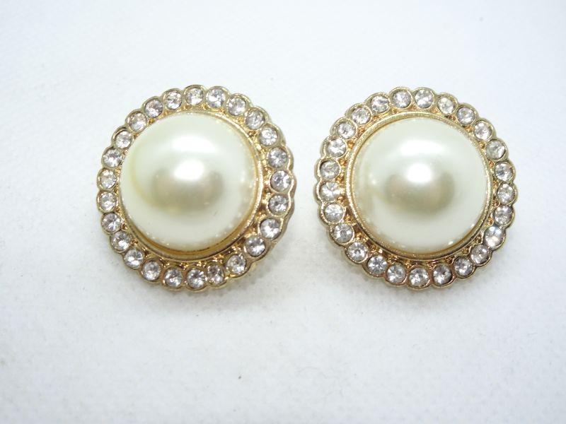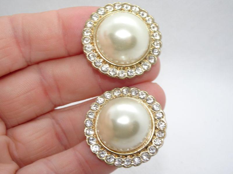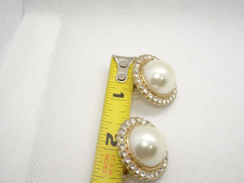 Gold Tone Oval Rhinestone Pearl Clip Back Earrings