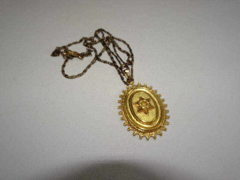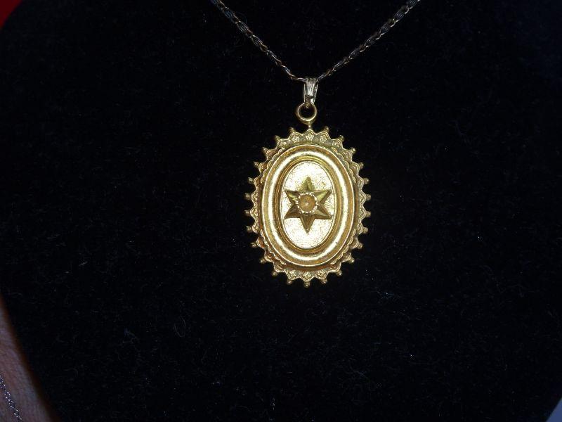 Gold Tone Oval Star of David Pendant, Jewish symbol