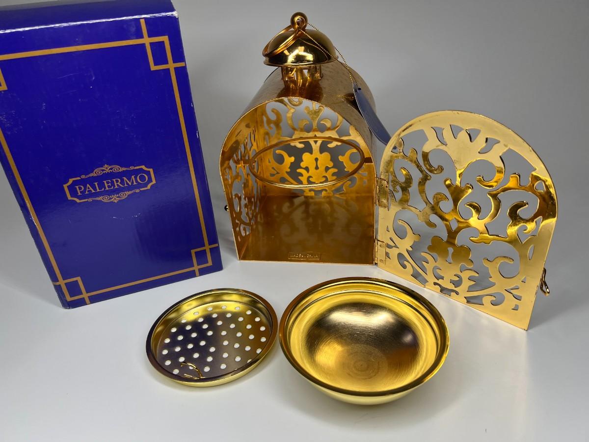 Gold Tone Palermo Incense Burner Candle Holder Scent Keeper. Comes with original box. Looks like a scent diffuser of sorts.