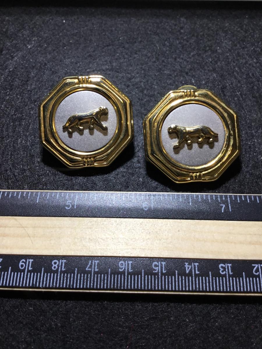 Gold tone panther statement earrings
