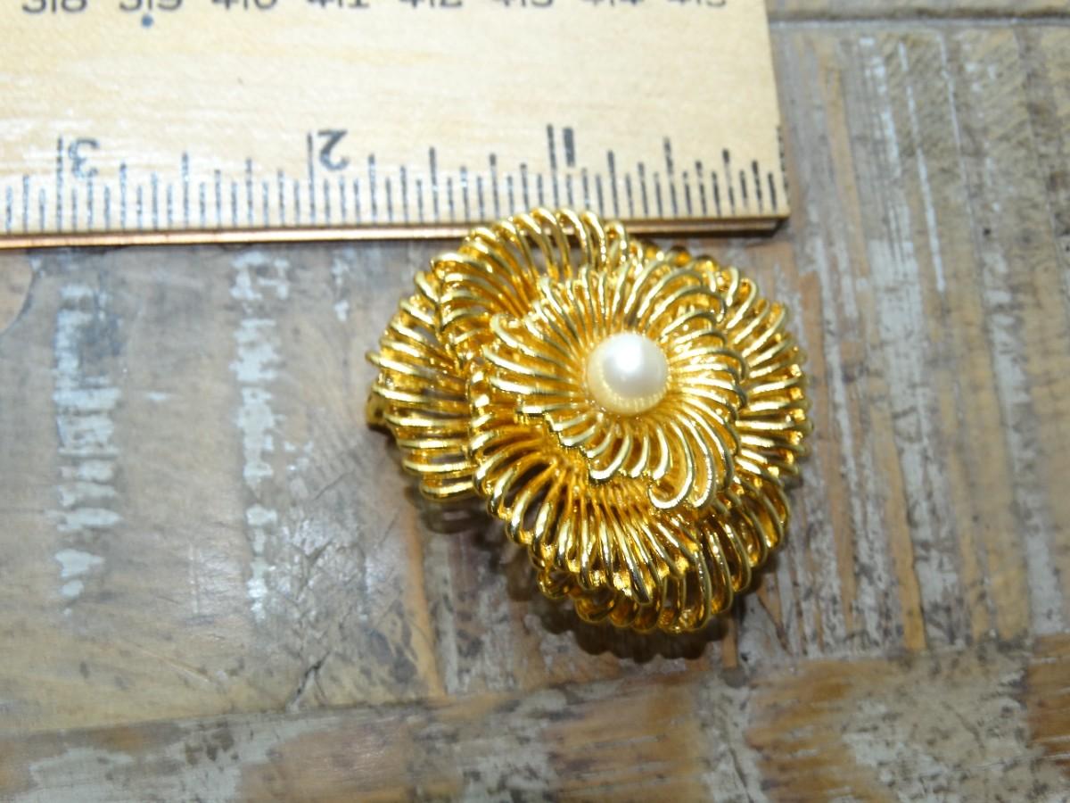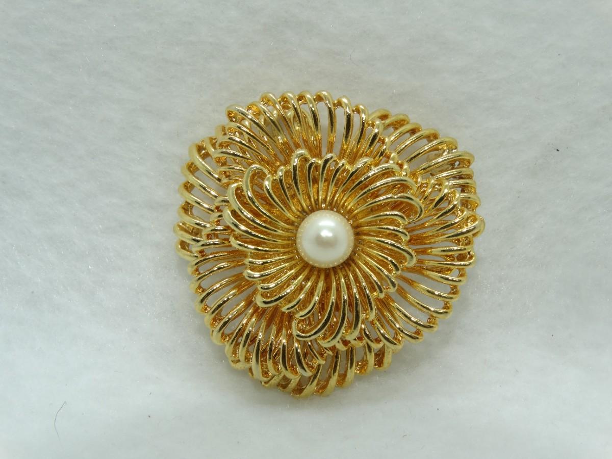 Gold Tone Pearl Flower Brooch