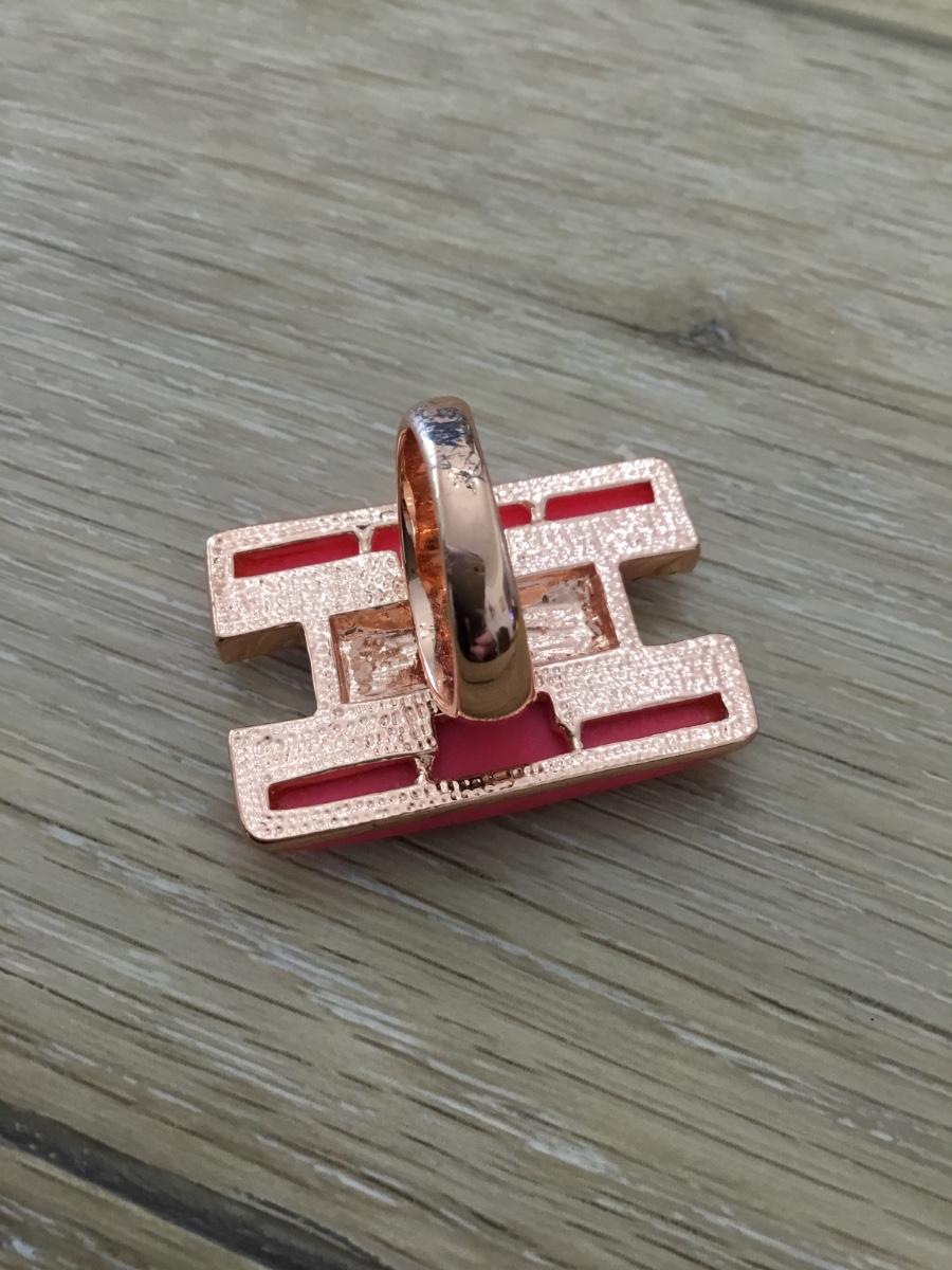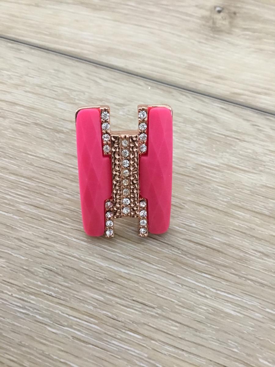Gold tone pink and rhinestone fashion ring