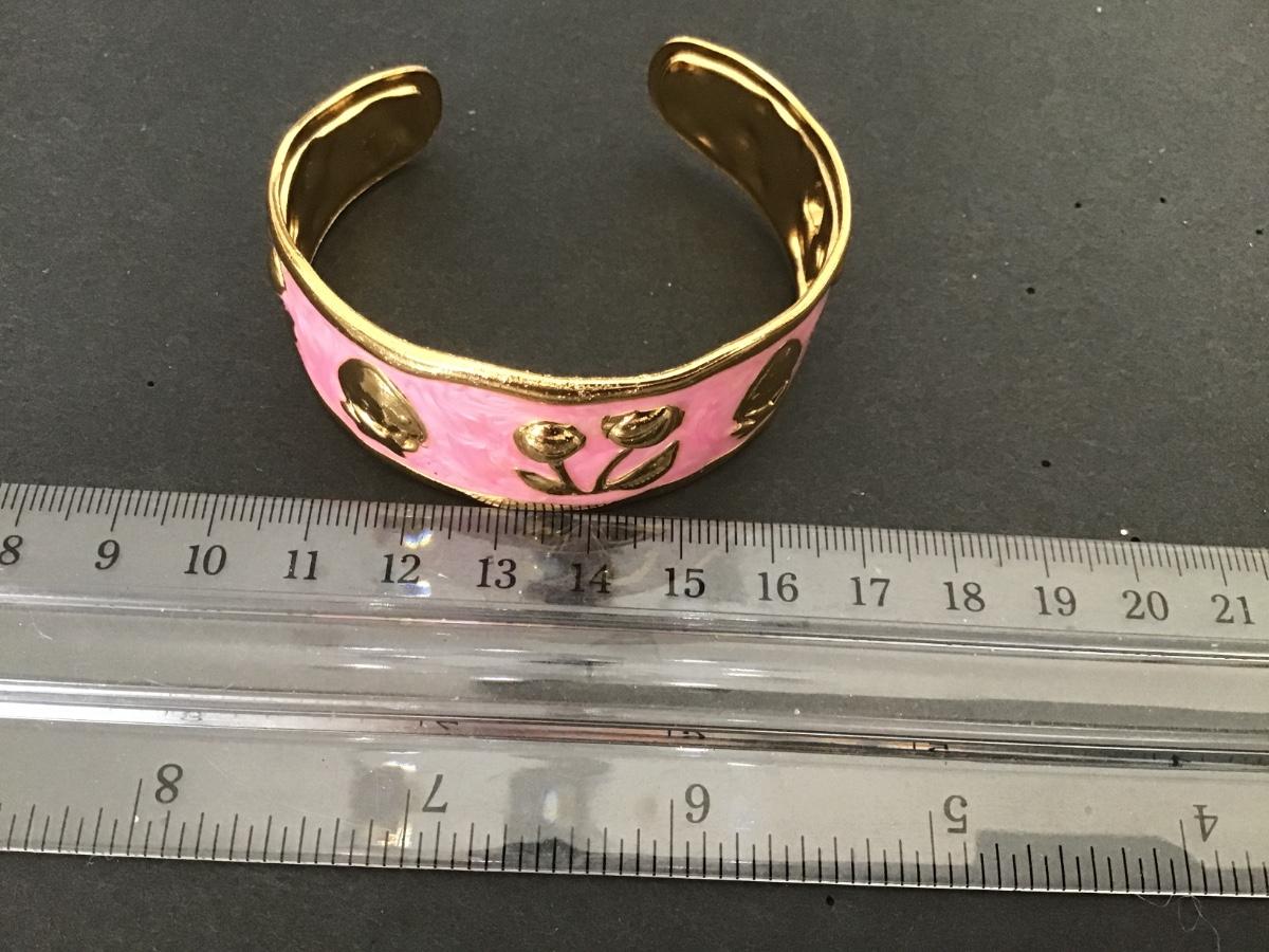 Gold Tone pink Enamel Fruit Cuff