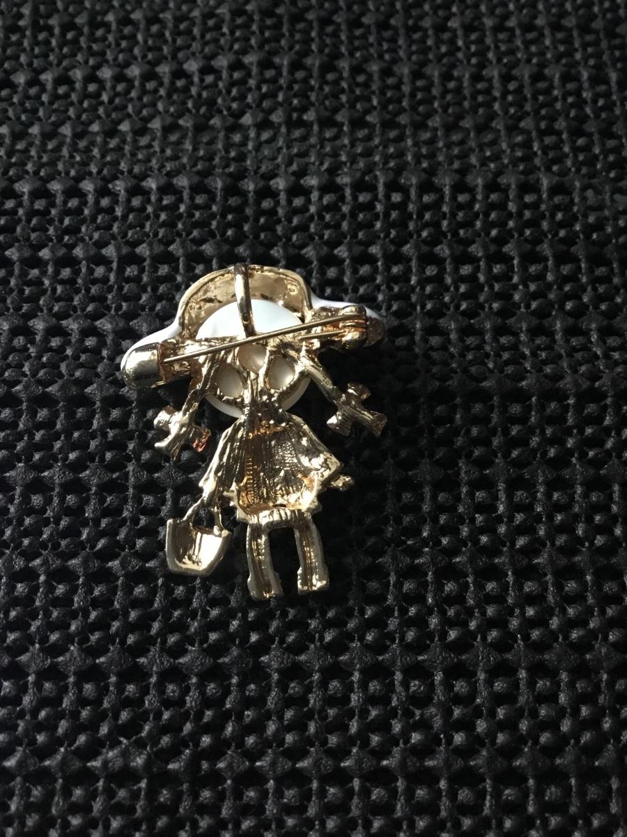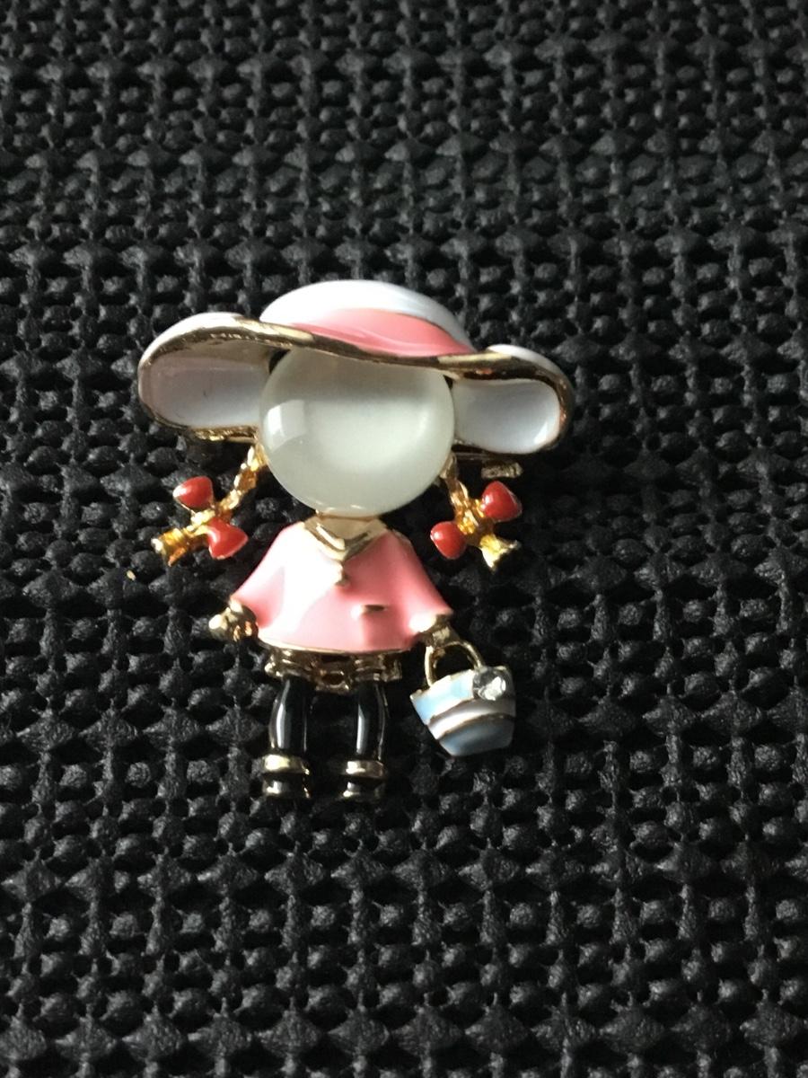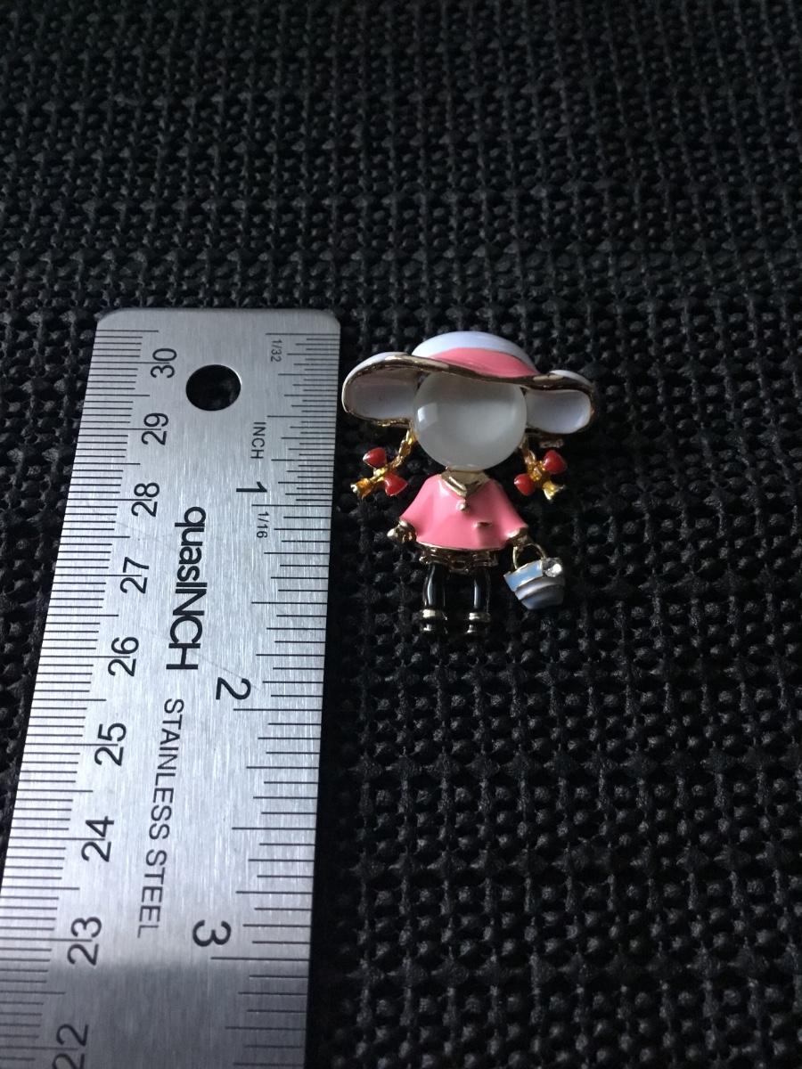 Gold tone pink enemal and opal inlaid little girl brooch pin