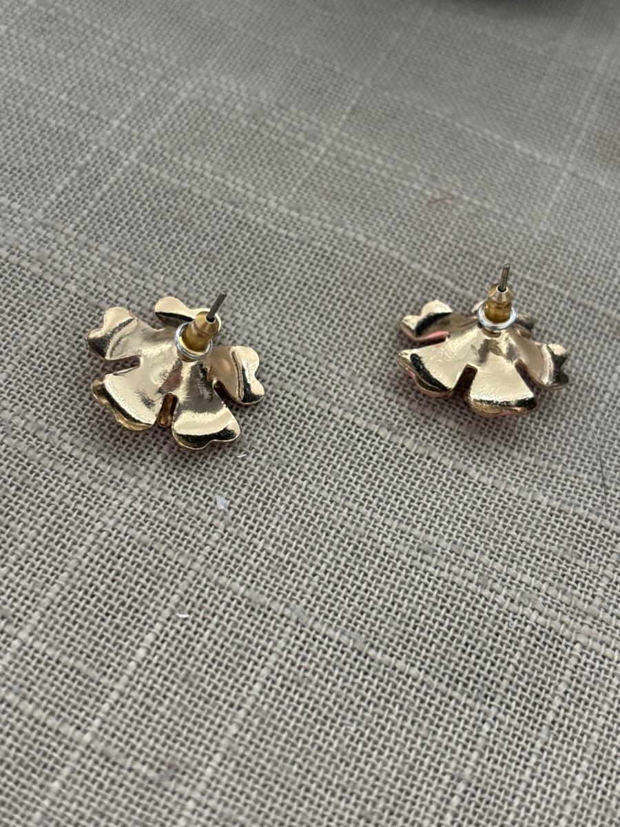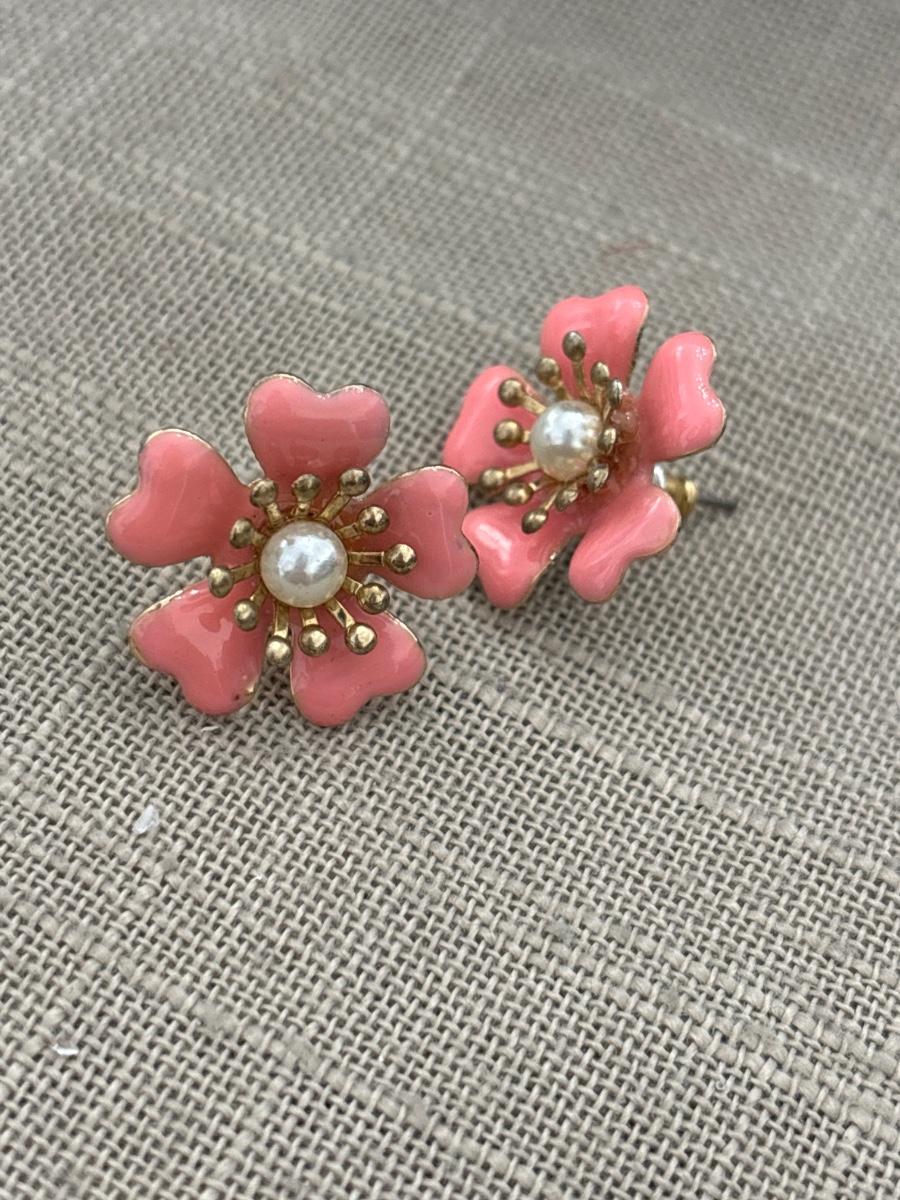 Gold tone pink flower earrings