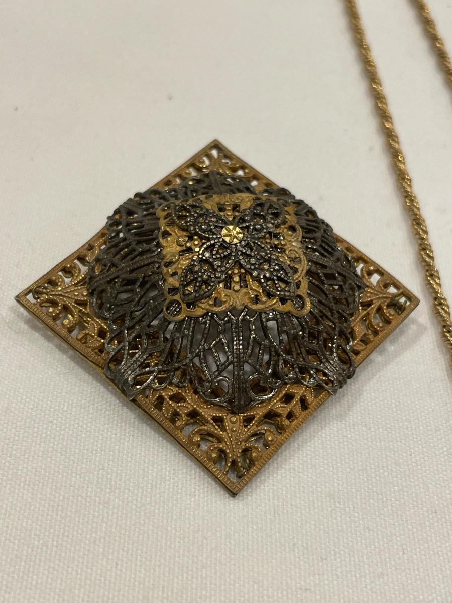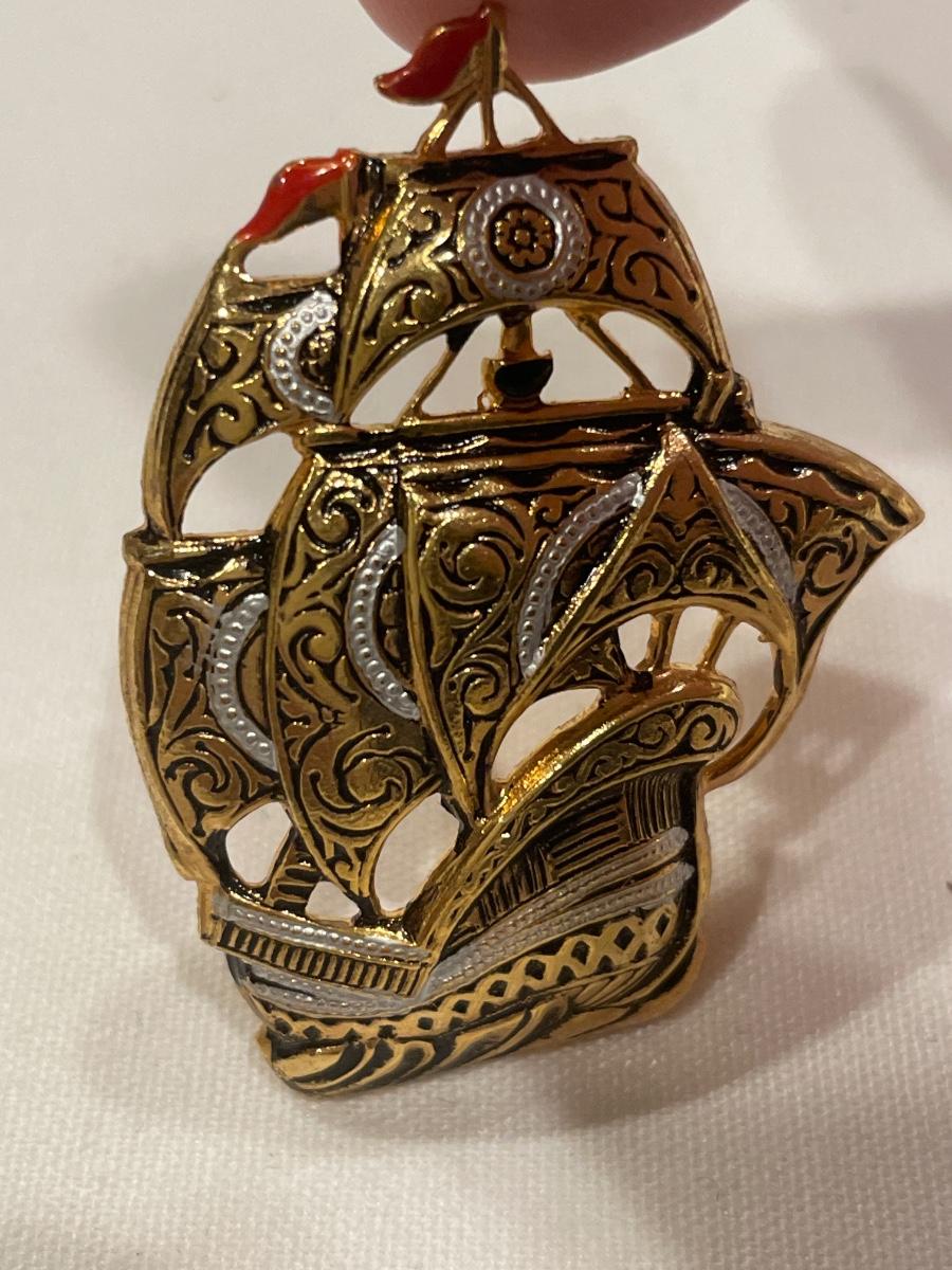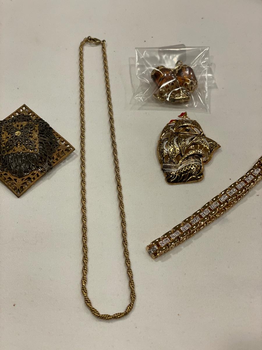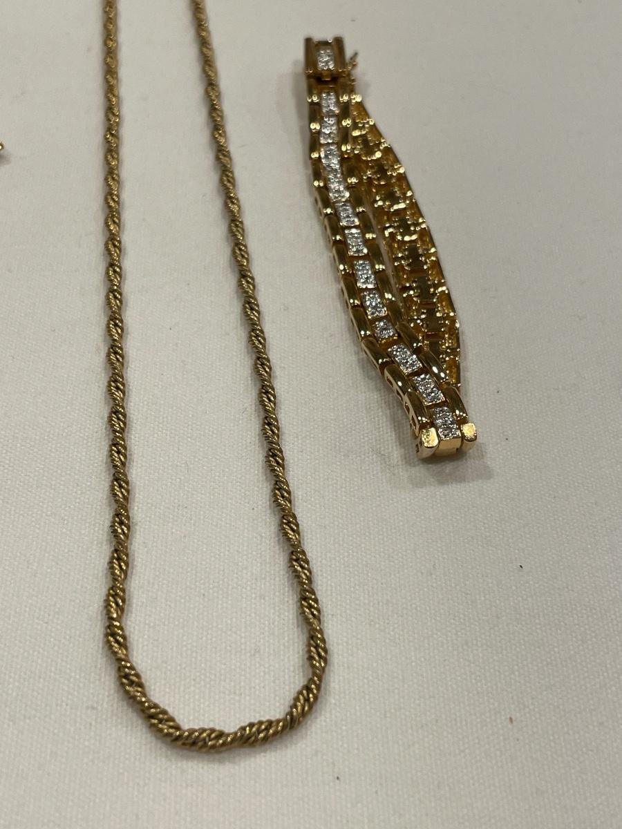 Gold tone pins, bracelet and earrings, 1/20 10k chain