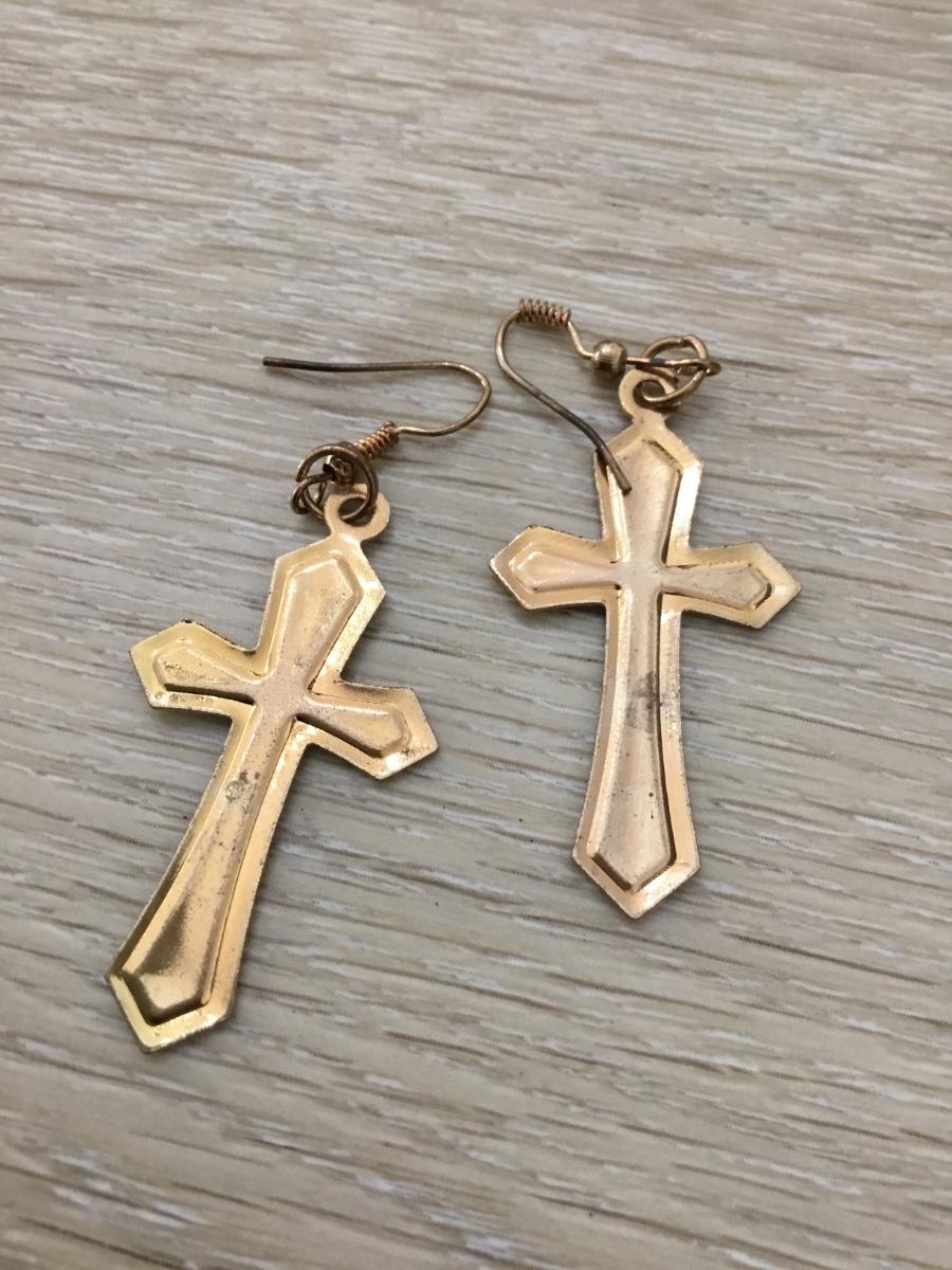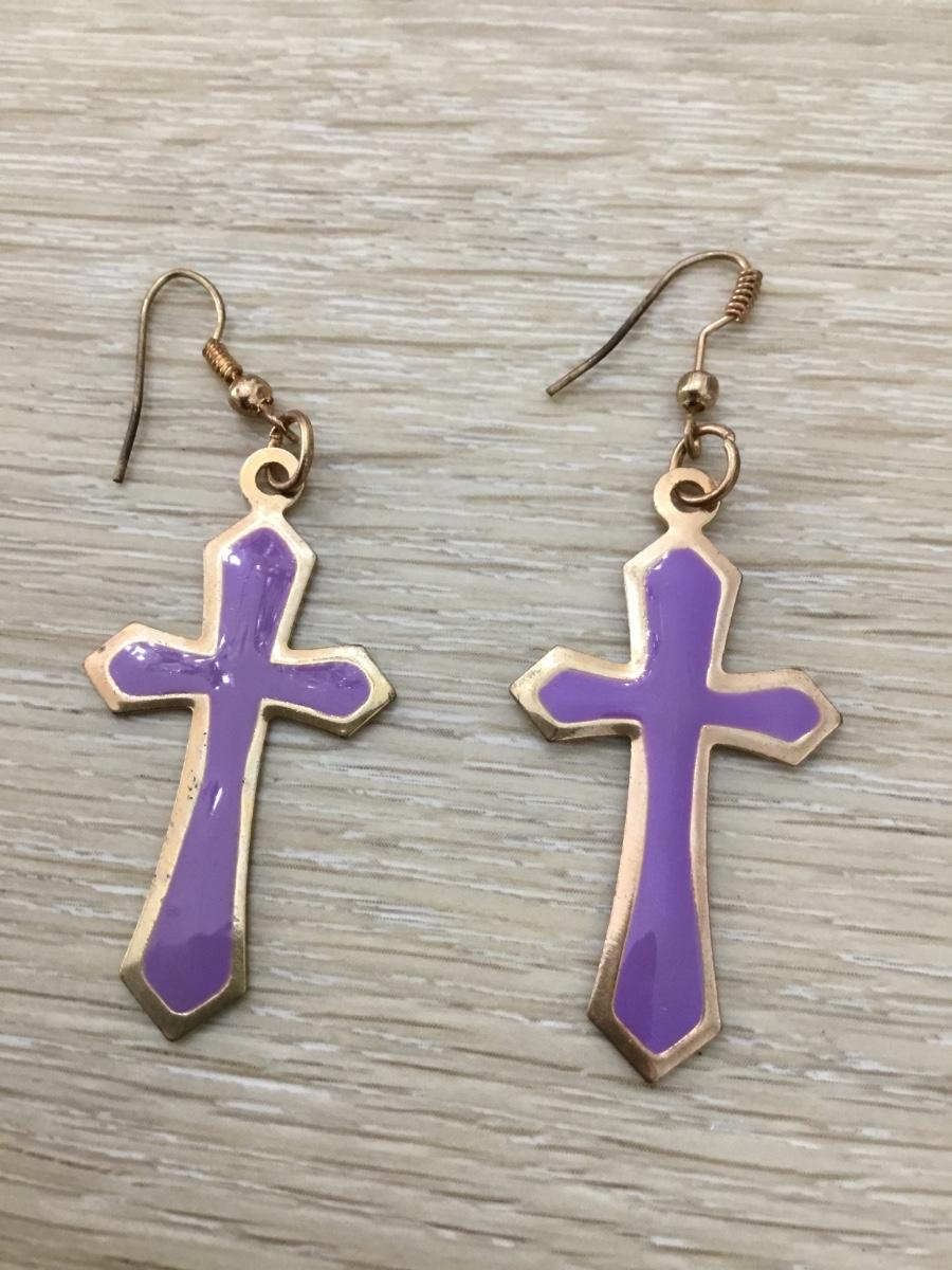 Gold tone purple cross fashion earrings