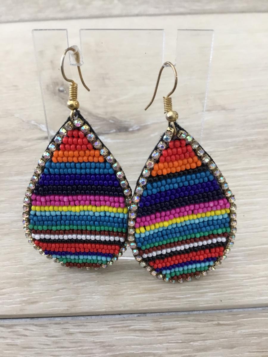 Gold tone rainbow teardrop earrings