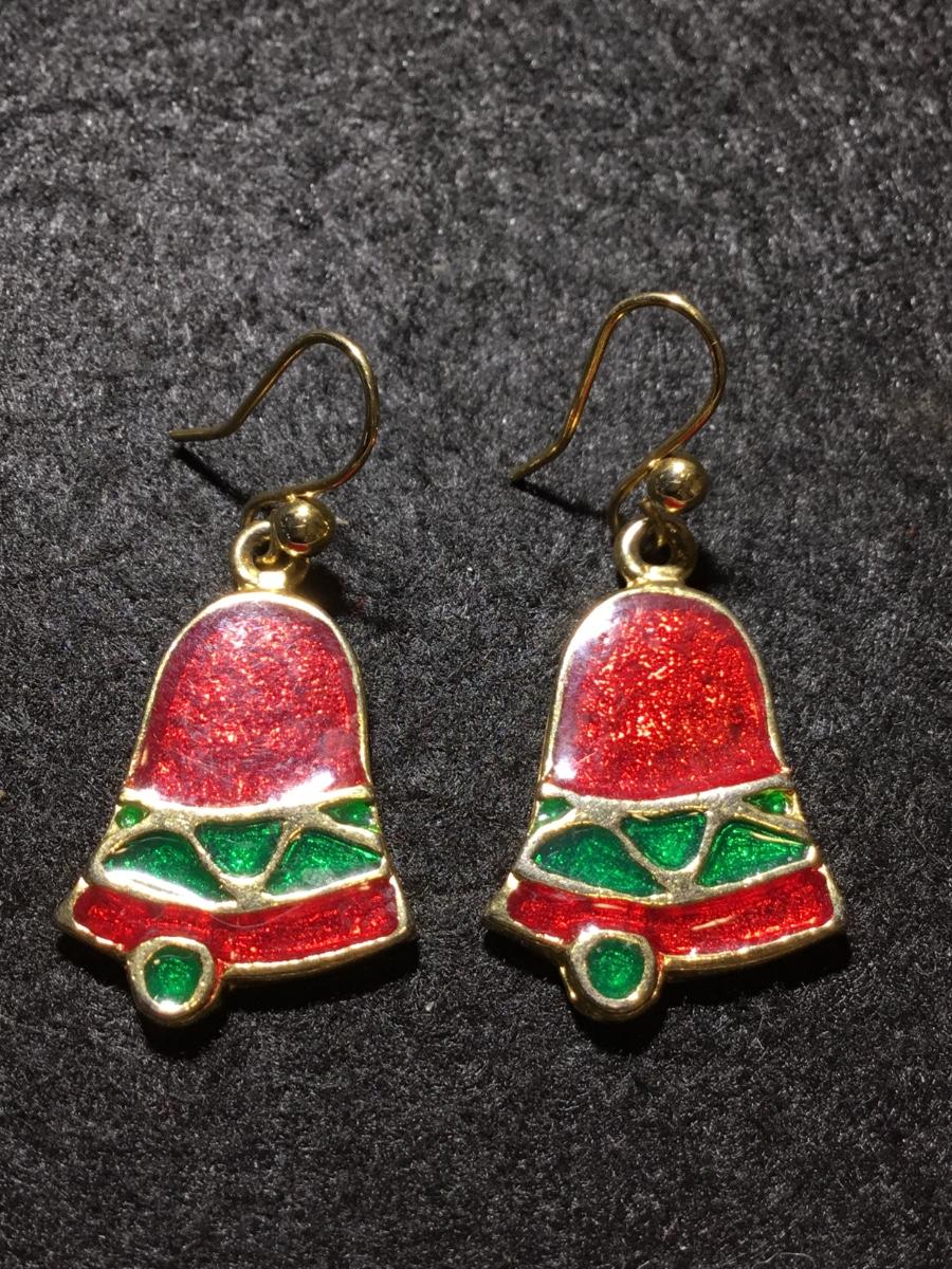 Gold tone red and green sleigh bell’s earrings