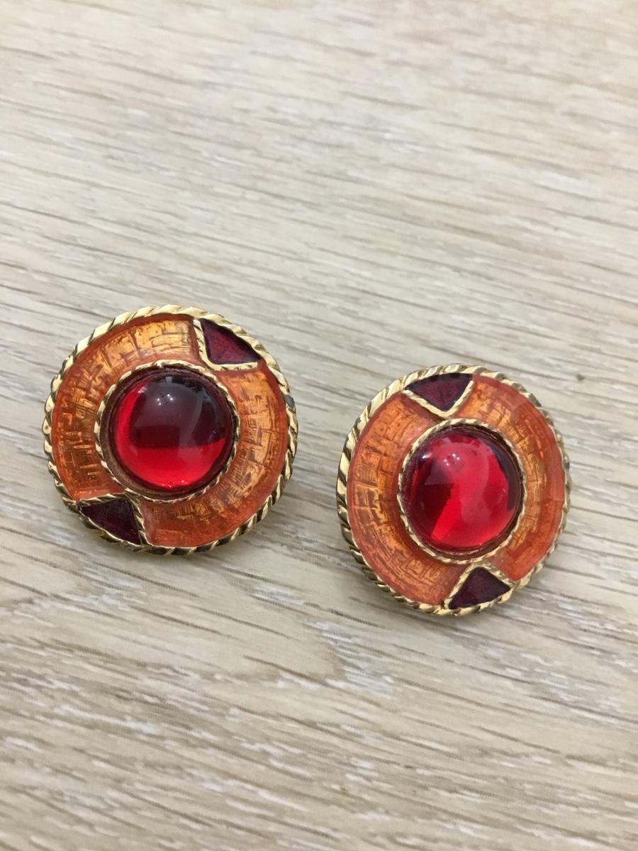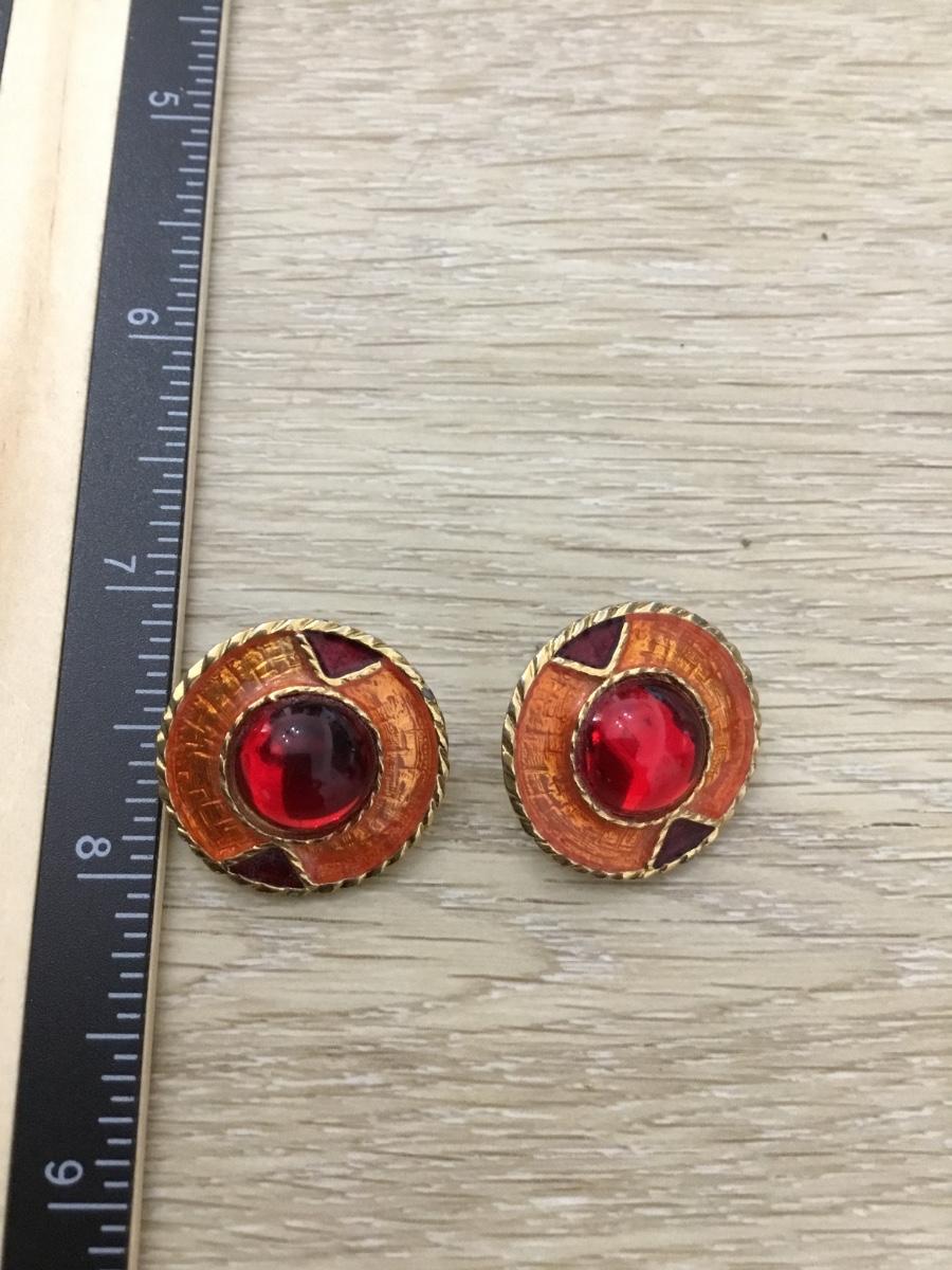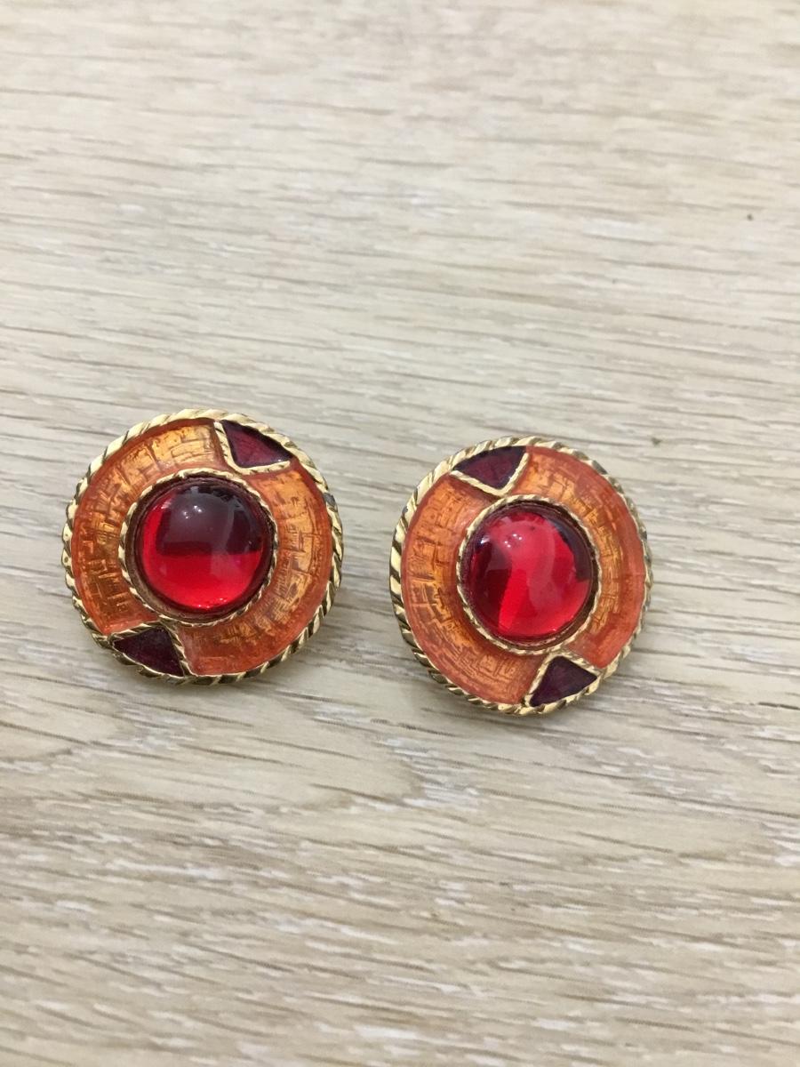 Gold tone red and orange stud fashion earrings