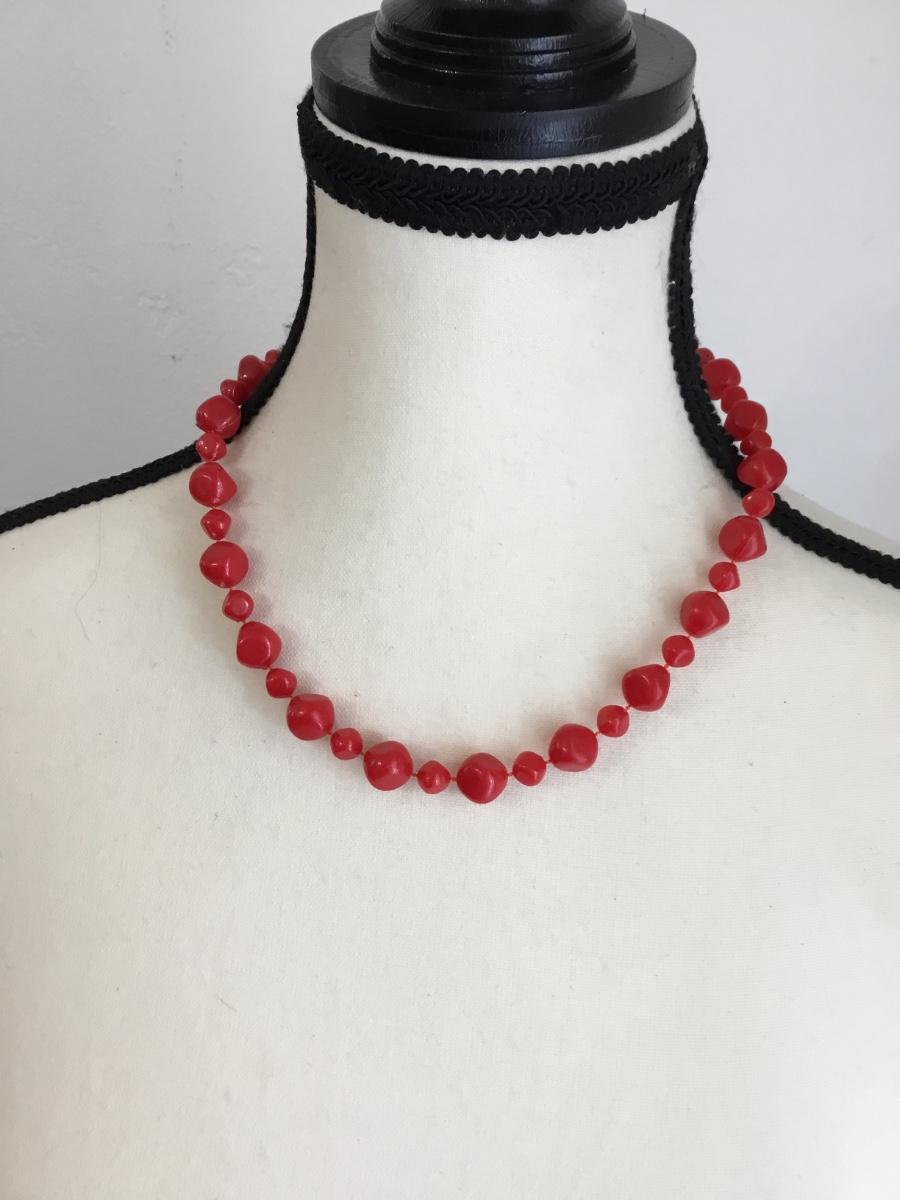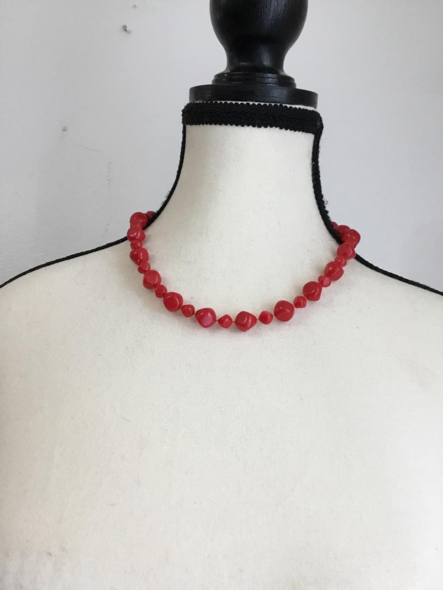 Gold tone red beaded collar necklace