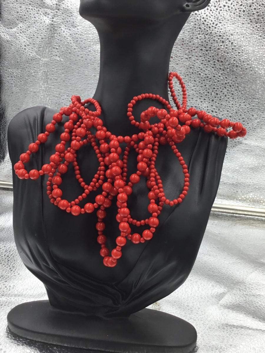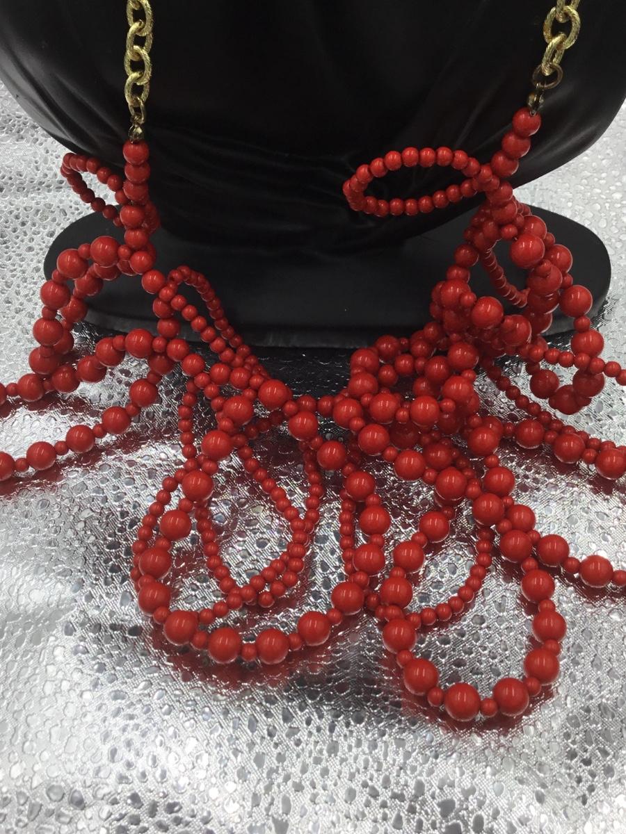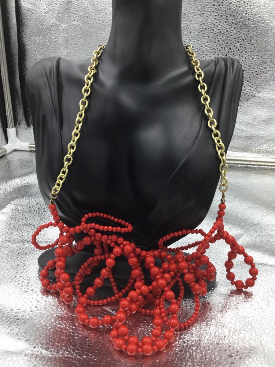Gold tone red beaded necklace