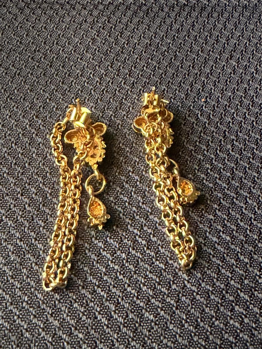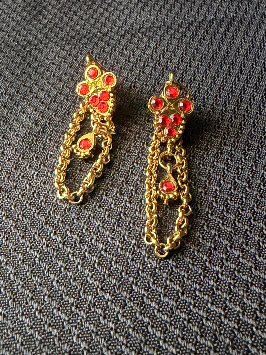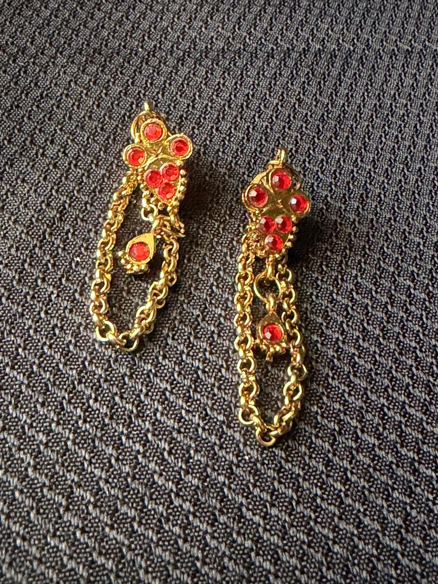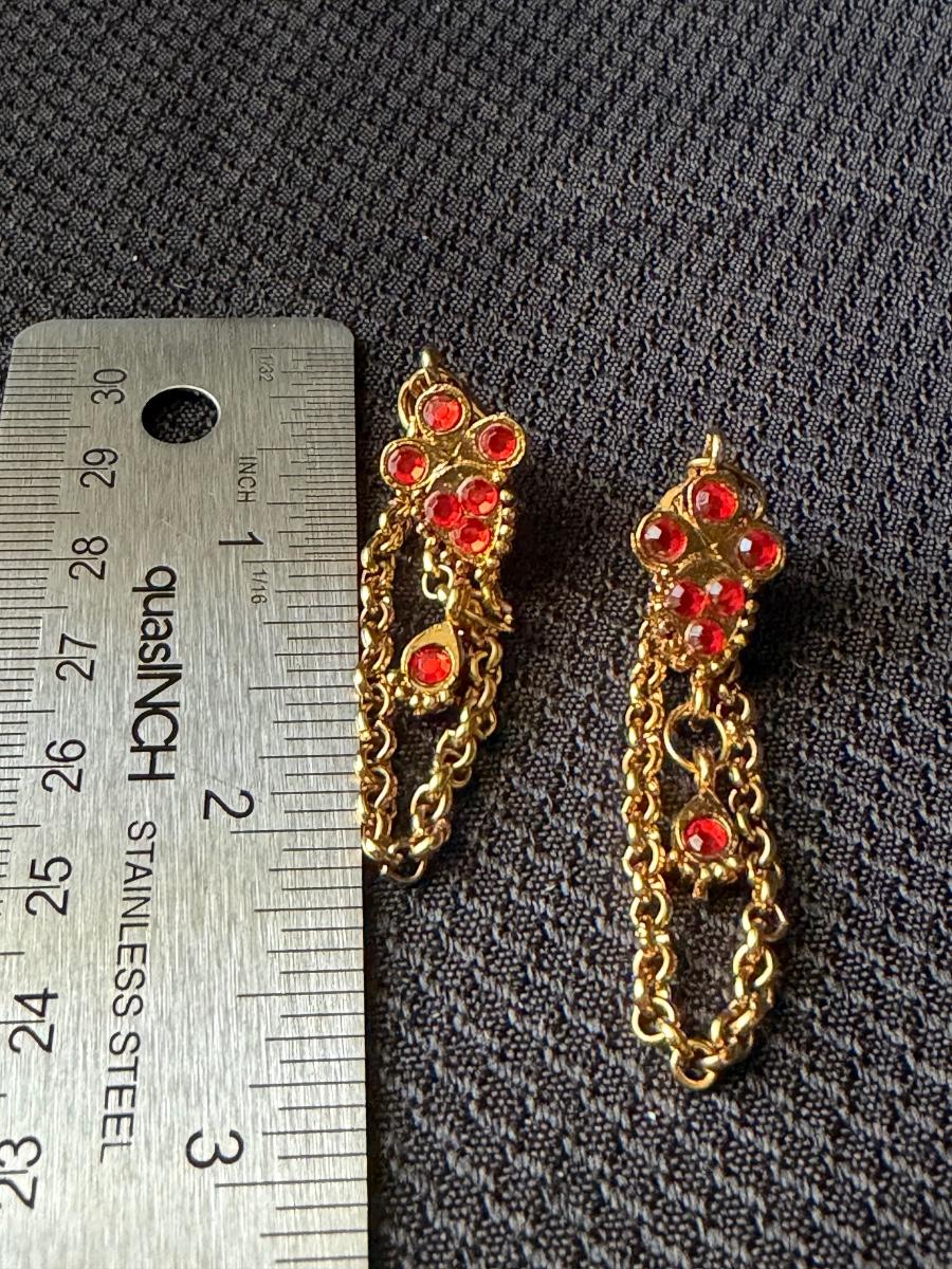 Gold tone red dangle chain unique earrings