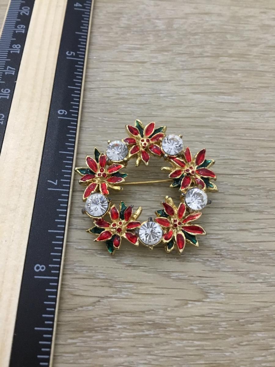 Gold tone red flower pin