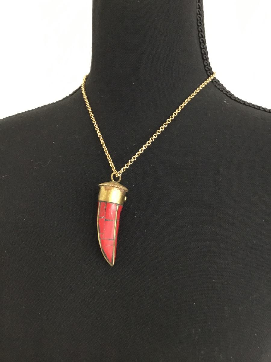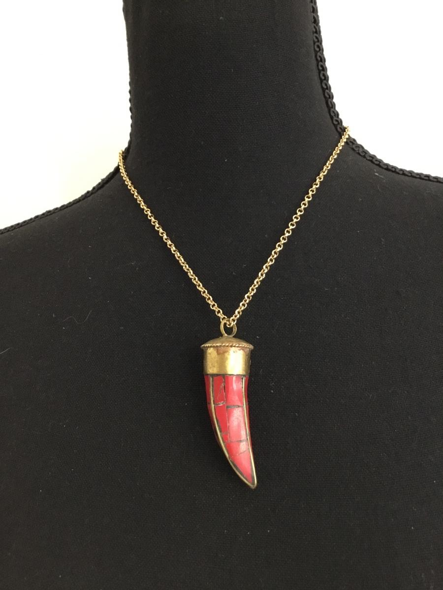 Gold tone red pendant necklace