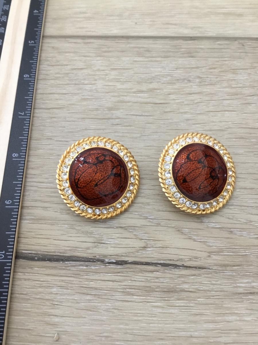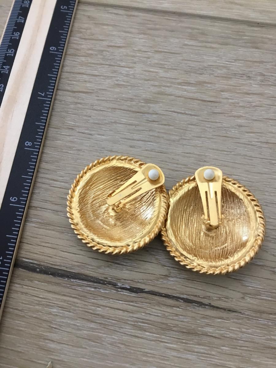 Gold tone red rounded vintage clip on statement earrings