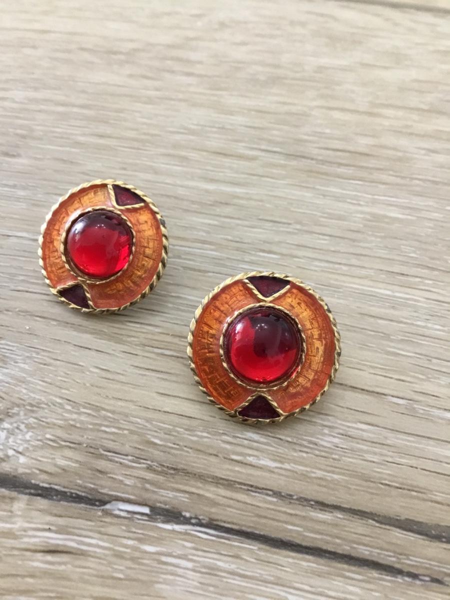 Gold tone red statement earrings