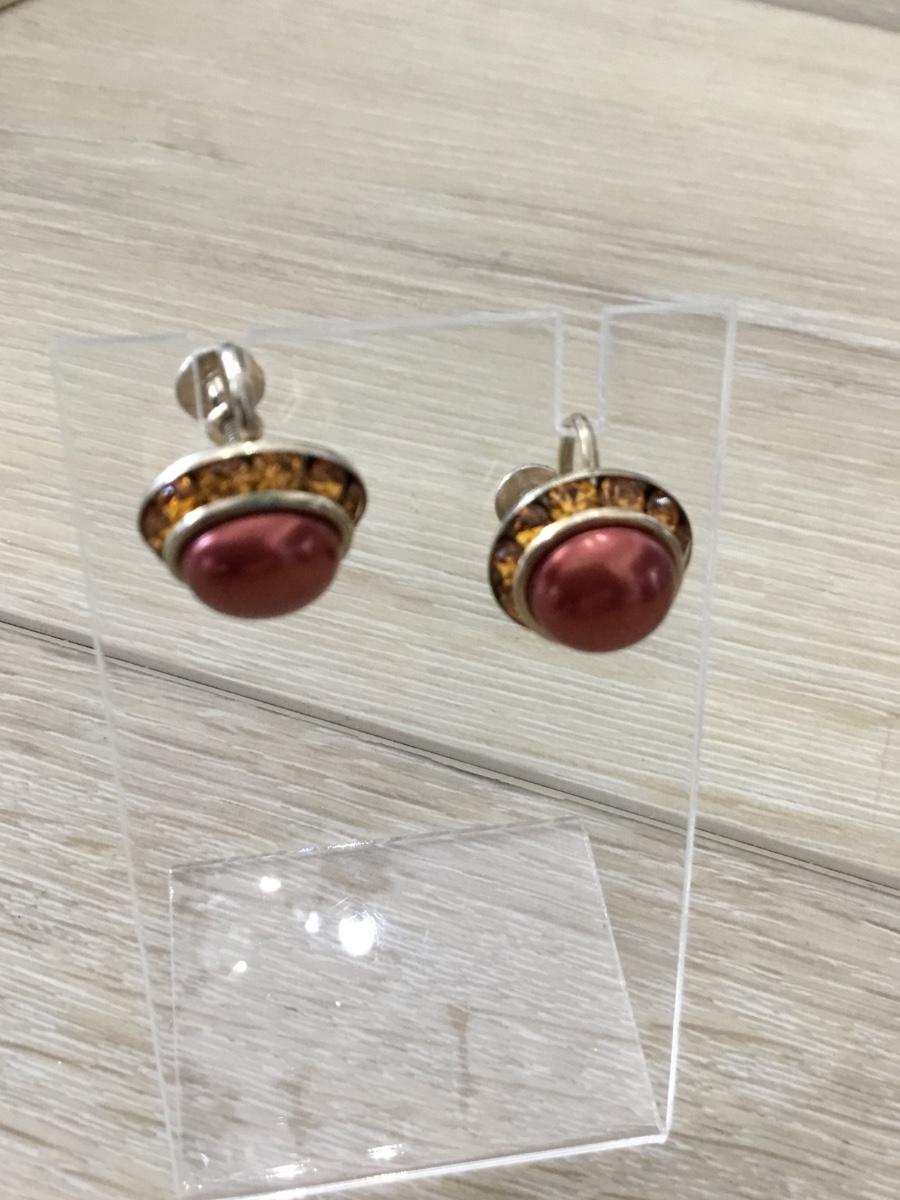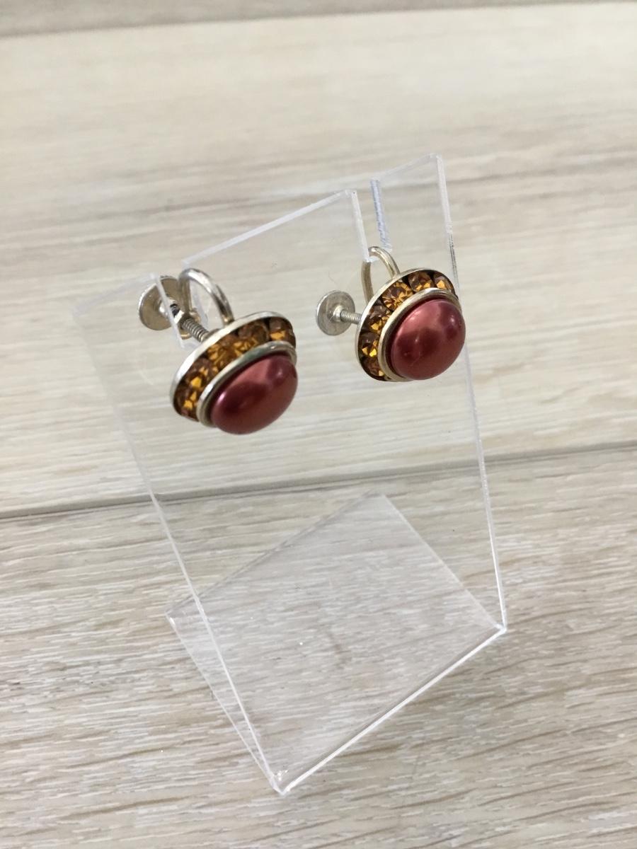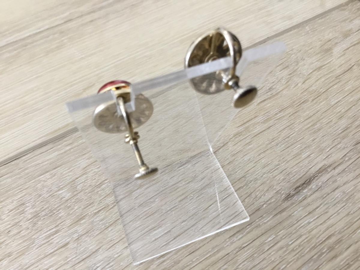 Gold tone red stud vintage screw on earrings