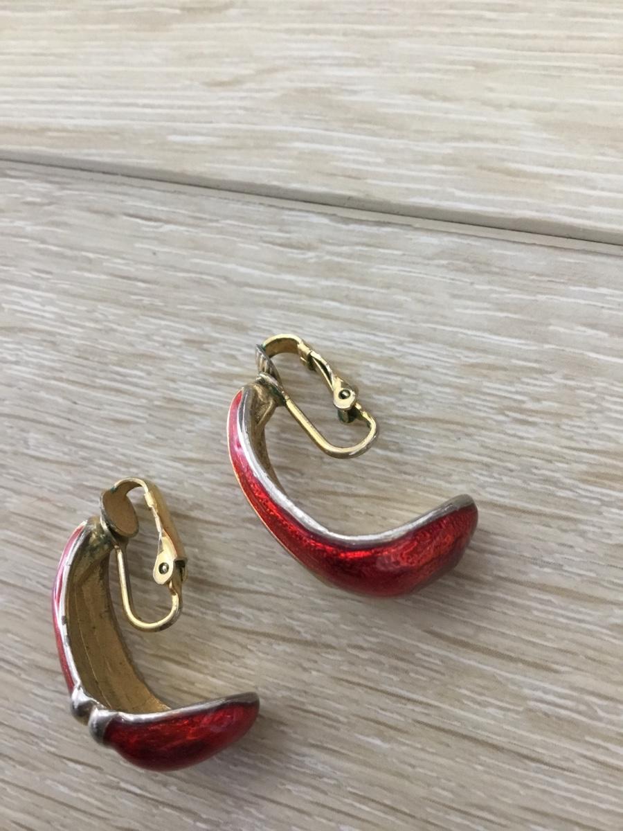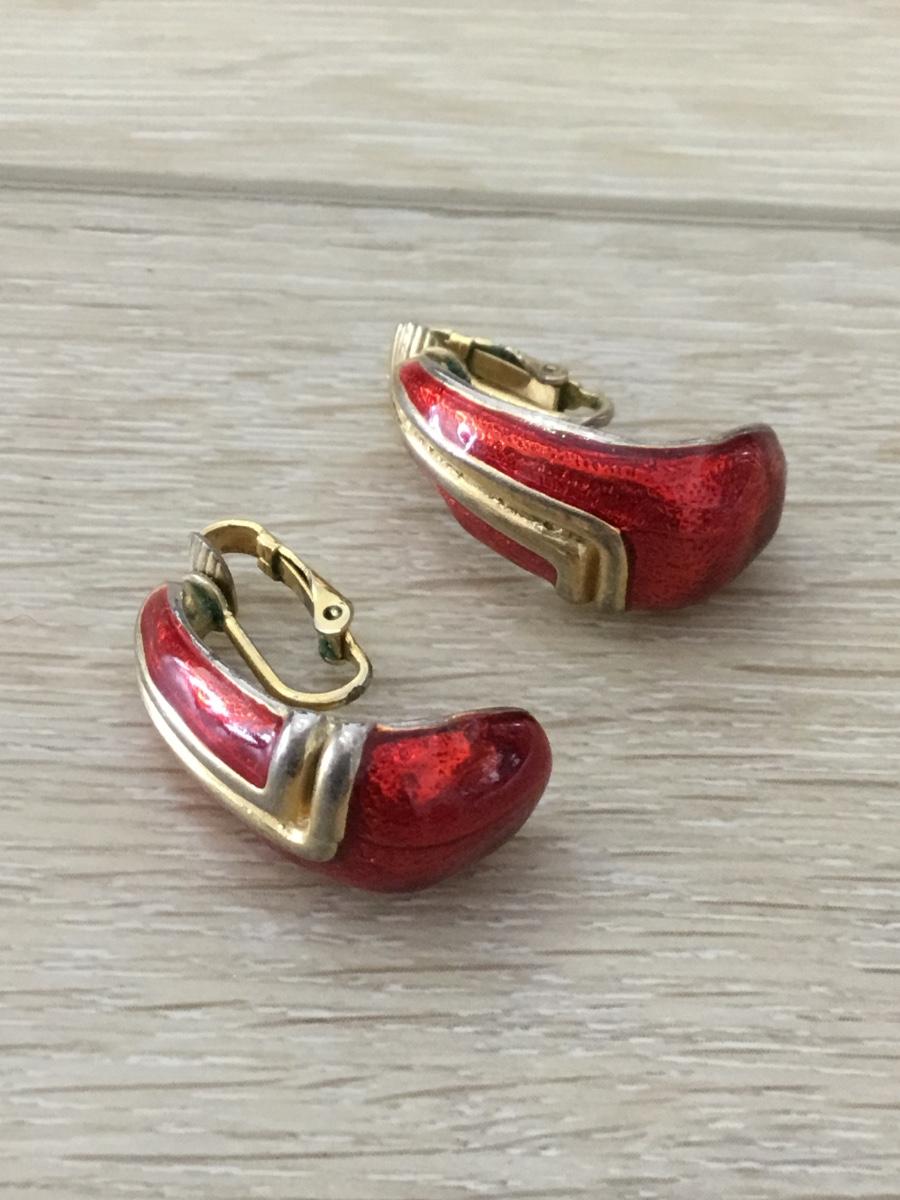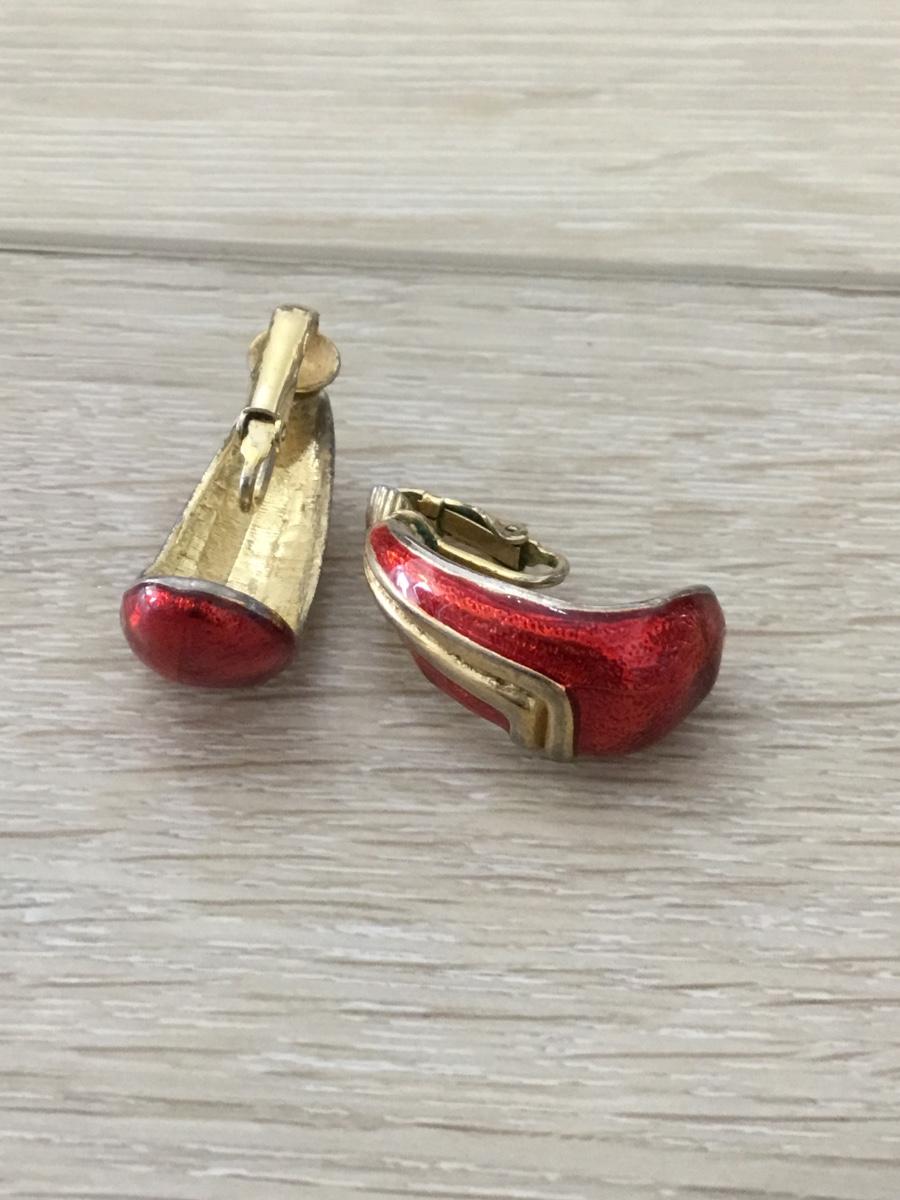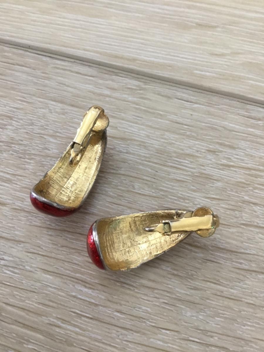 Gold tone red vintage clip on earrings