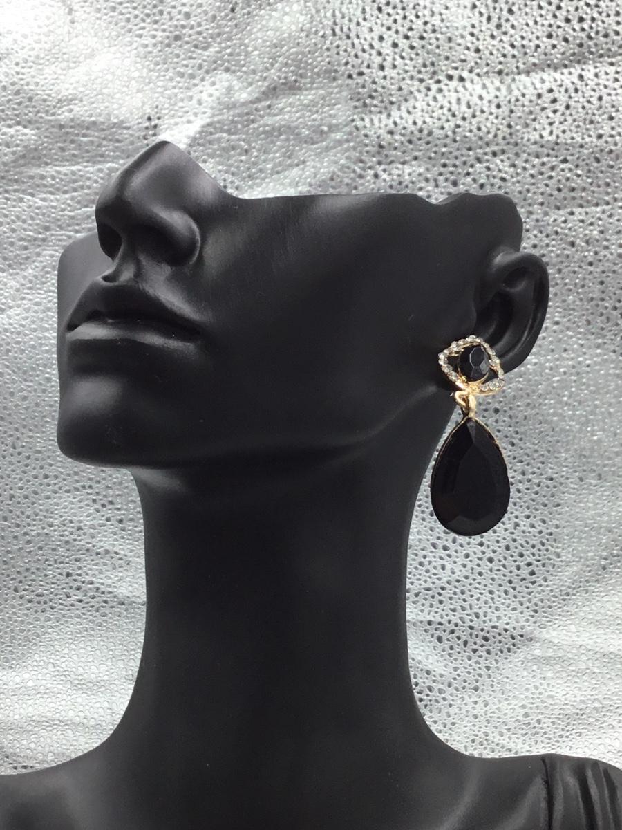 Gold tone rhinestone and black gem earrings