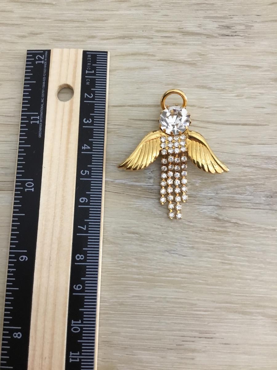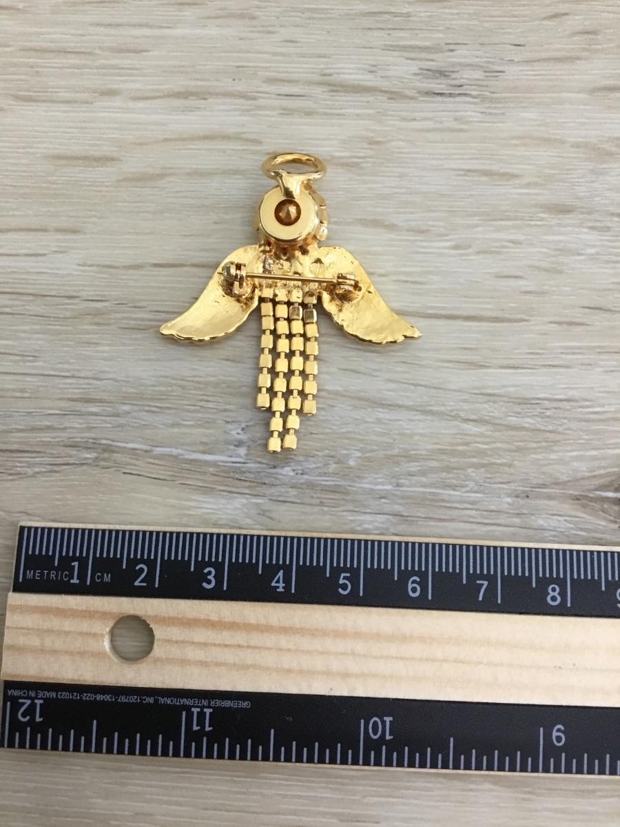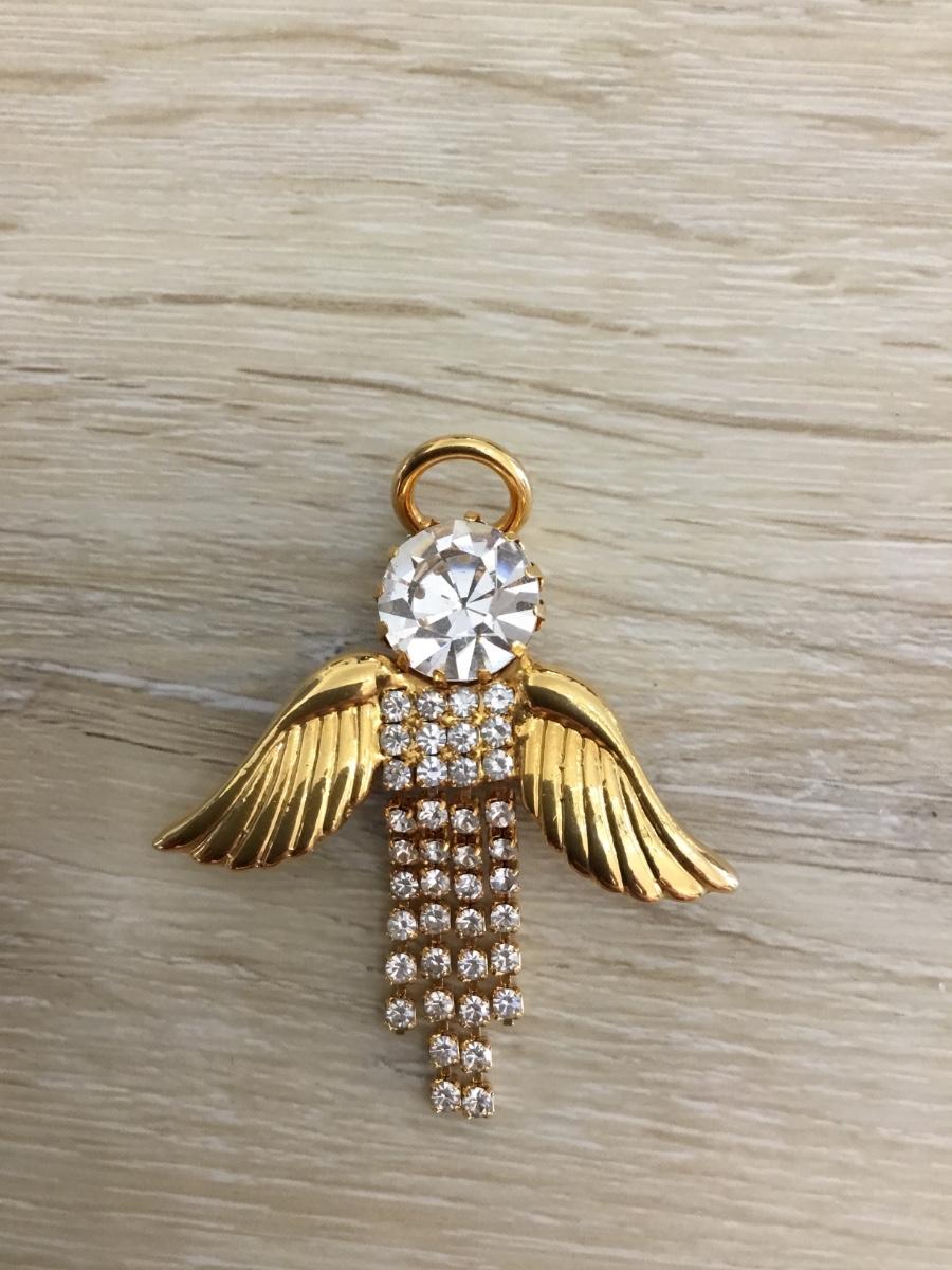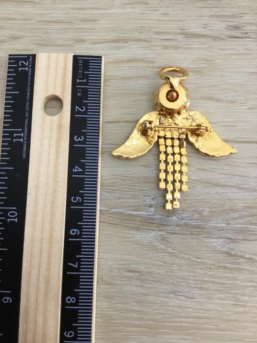 Gold tone rhinestone Angel brooch
