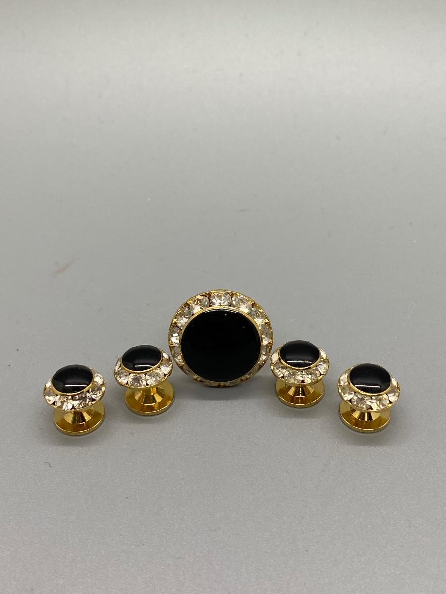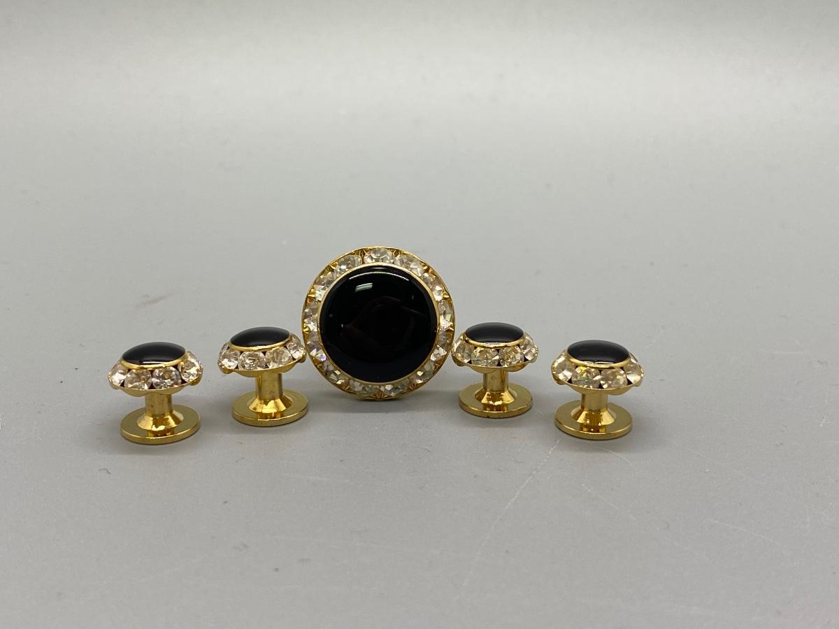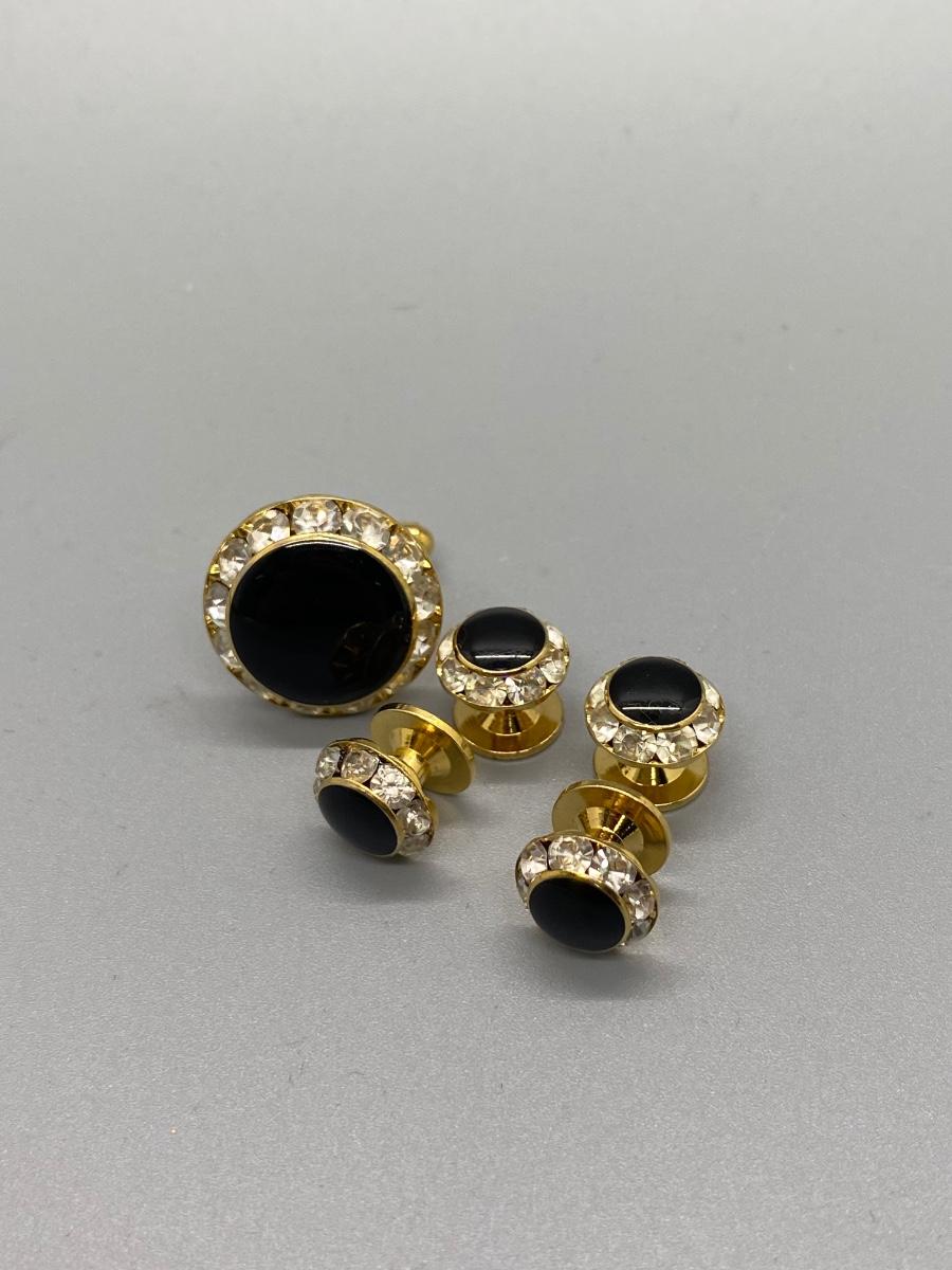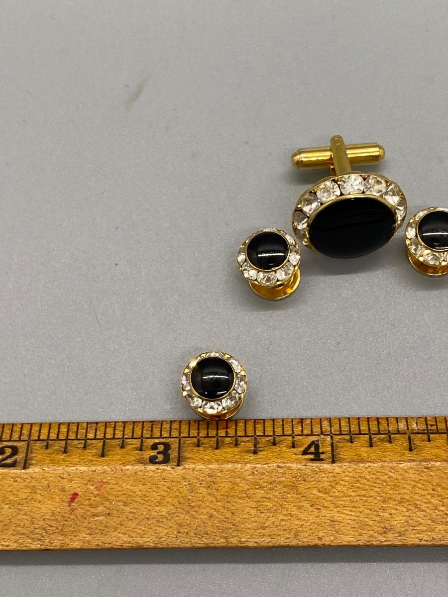 Gold Tone Rhinestone & Black Suit Studs and Cufflink