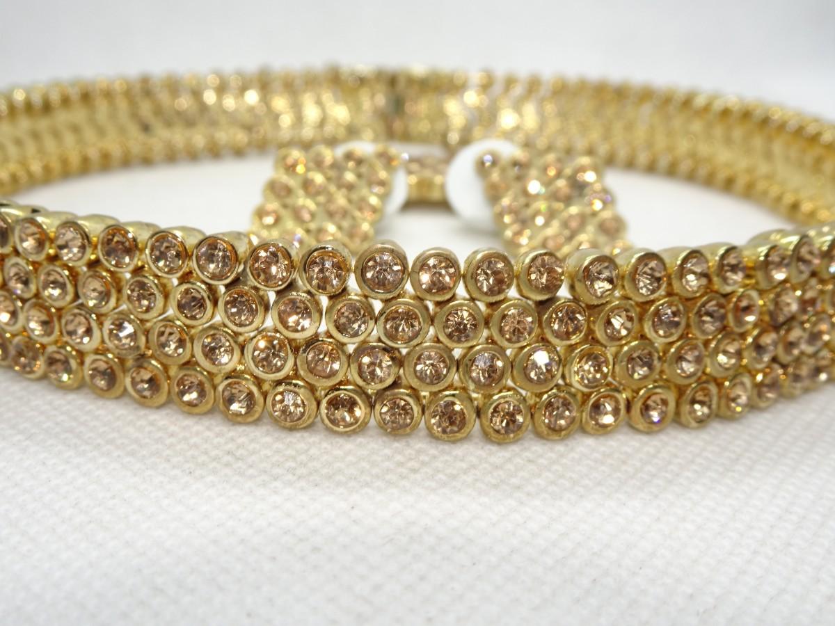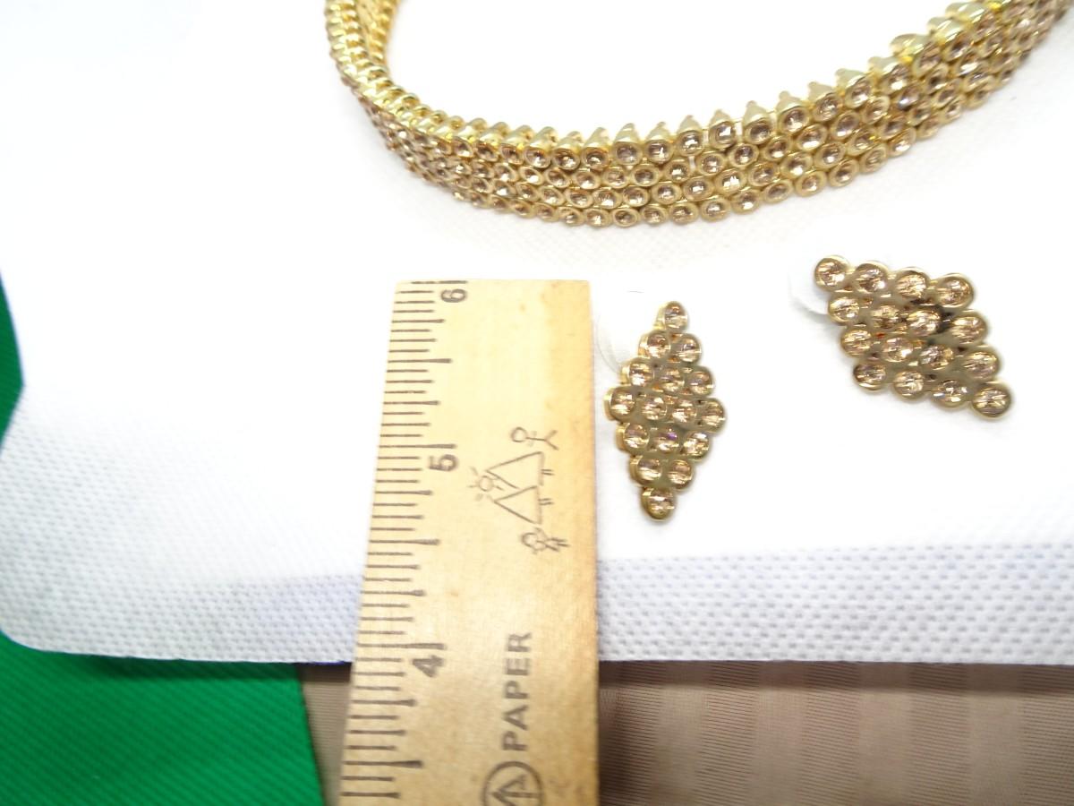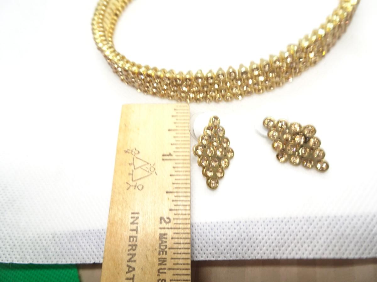 Gold Tone Rhinestone Choker Necklace & Post Earring Set - comes with extender