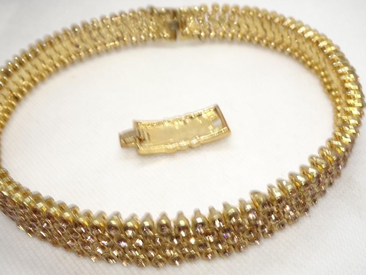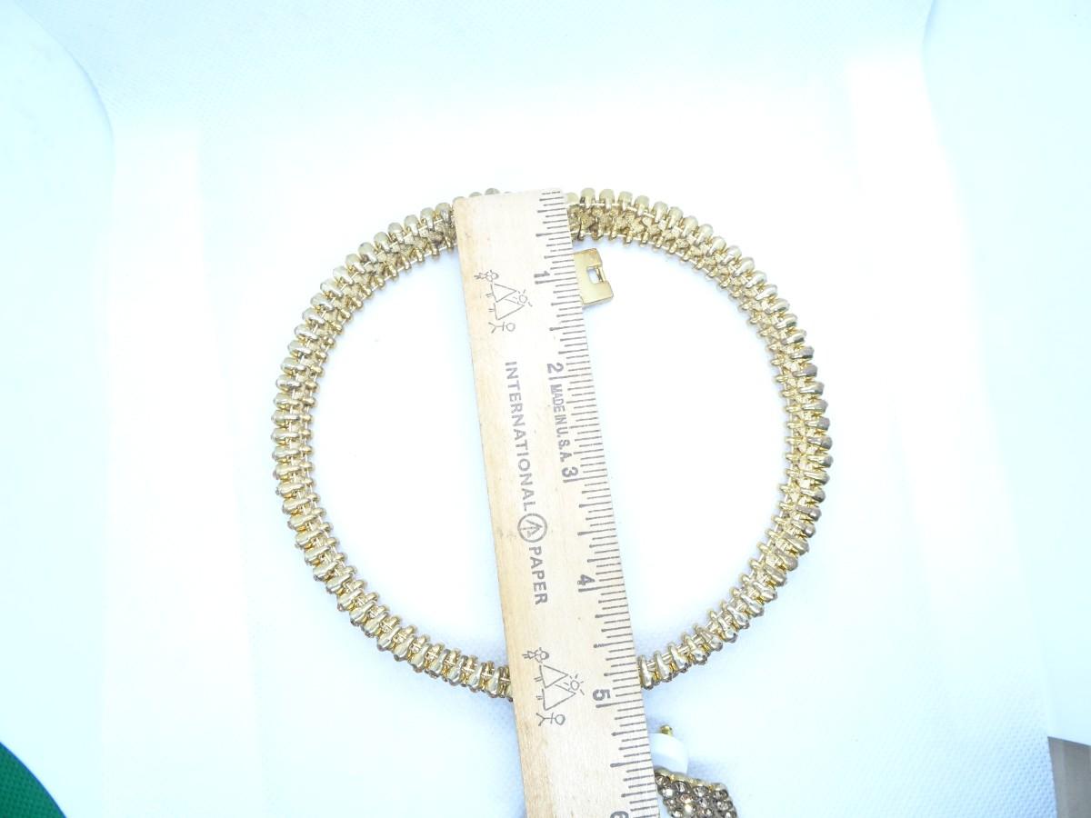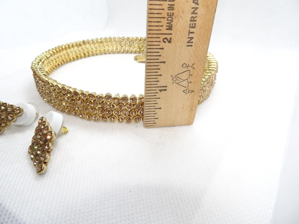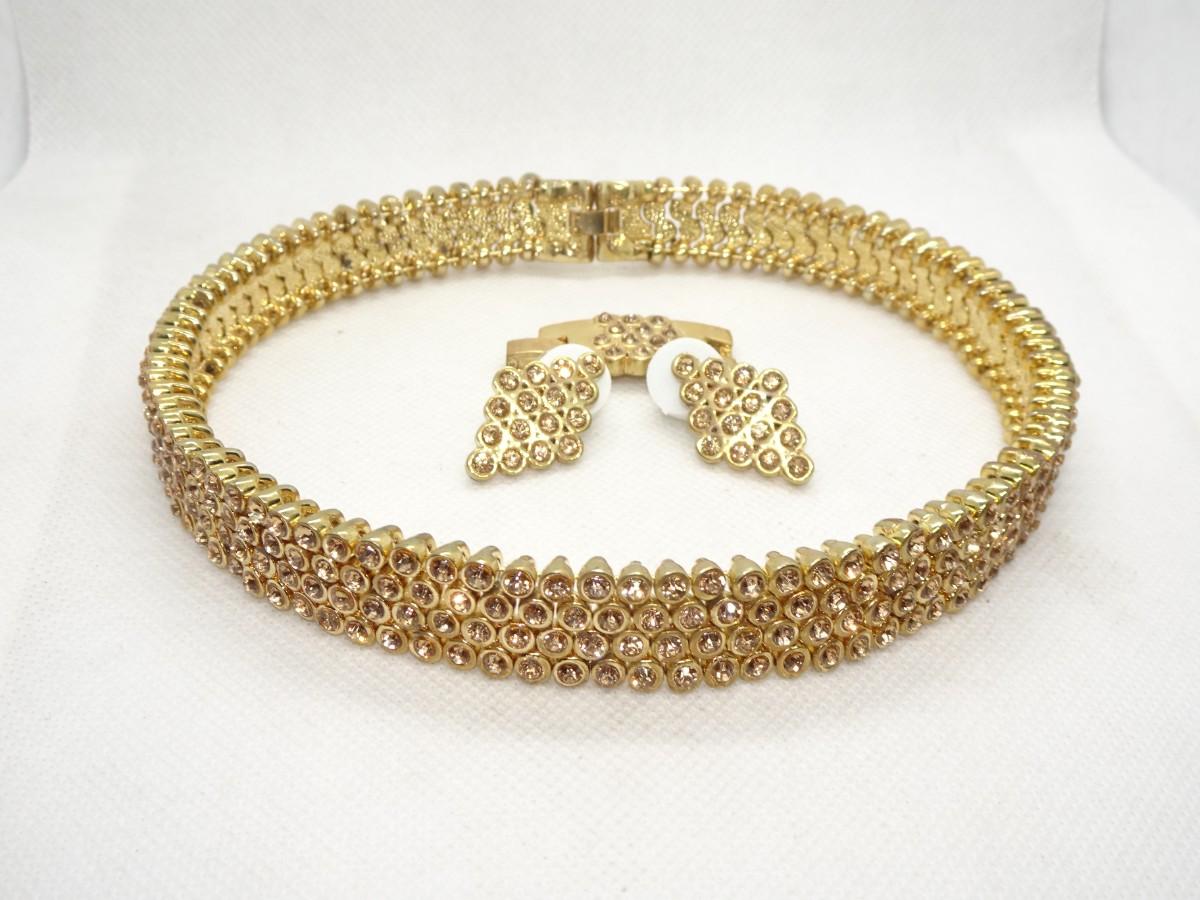 Gold Tone Rhinestone Choker Necklace & Post Earring Set - comes with extender