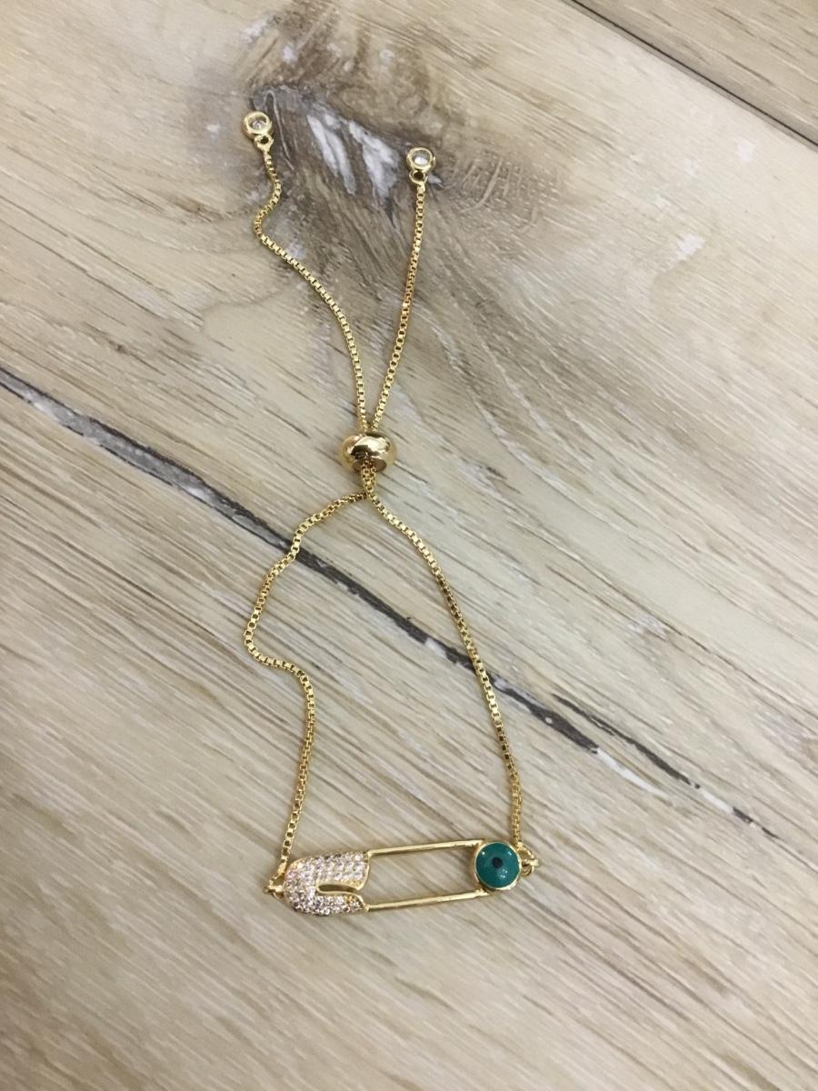 Gold tone rhinestone covered, safety pin slider bracelet