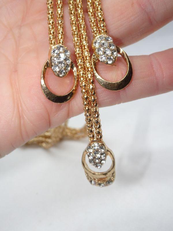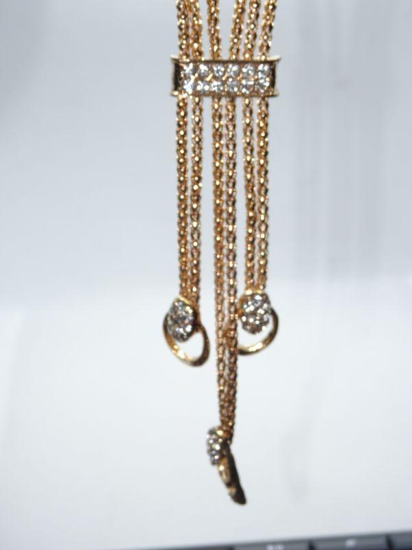 Gold Tone Rhinestone Drop Necklace