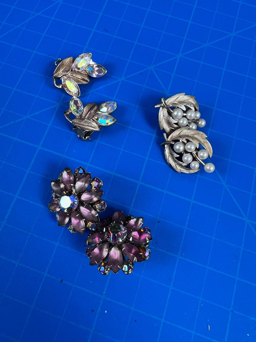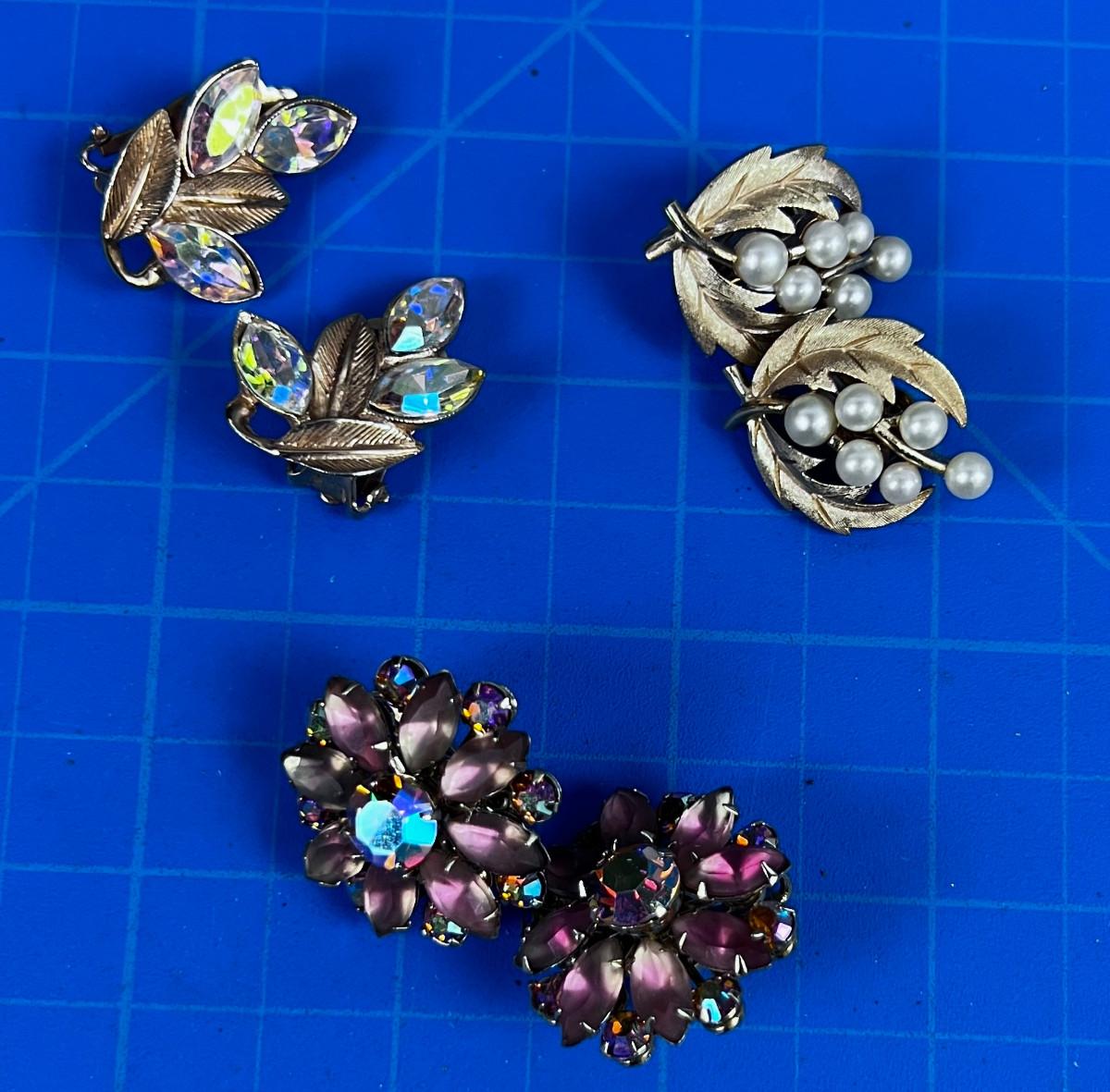Gold Tone Rhinestone Earrings, COLLECTIBLE Signed, Clip ons