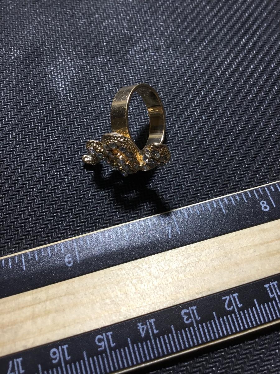 Gold tone rhinestone fashion snake ring