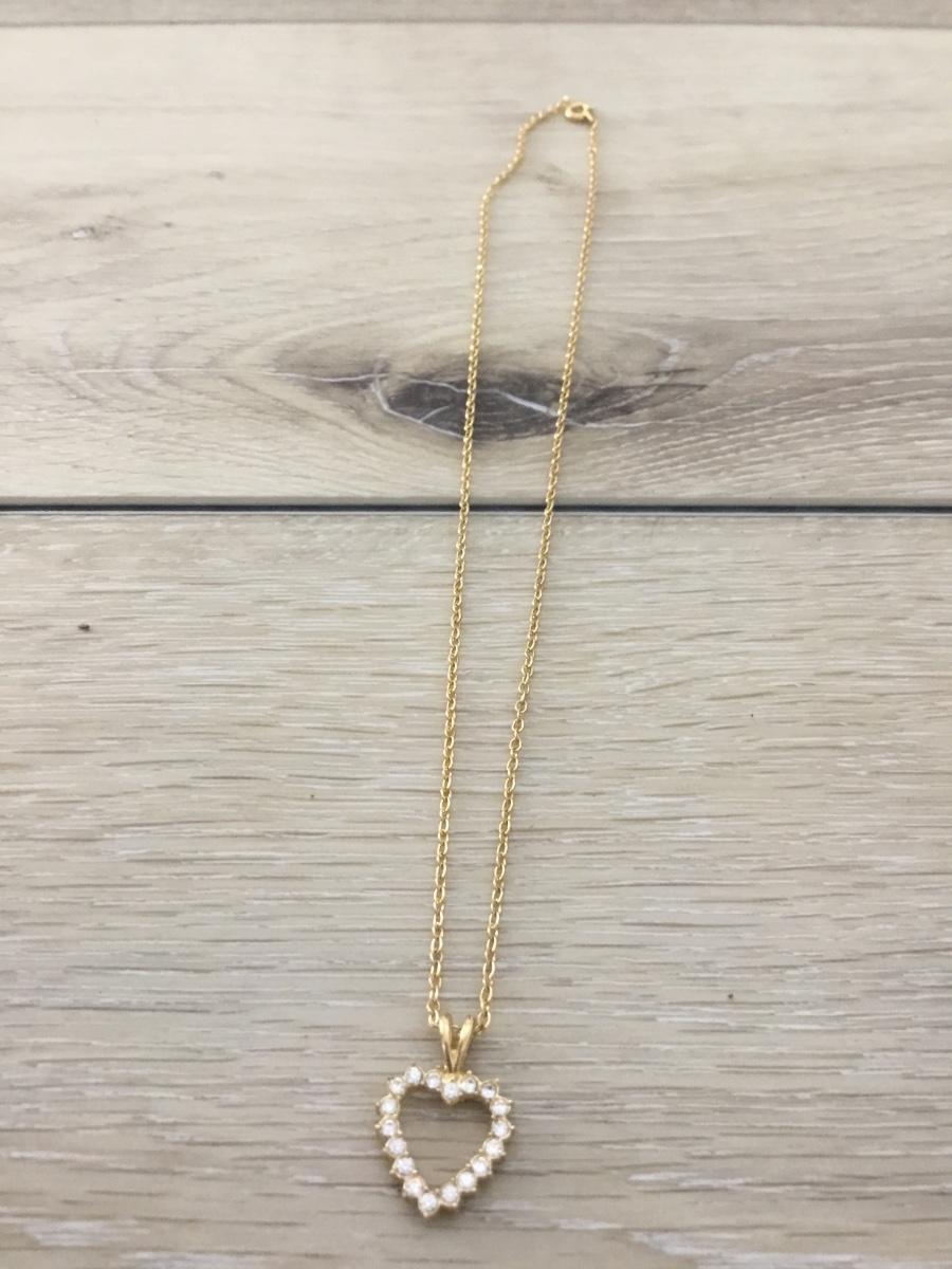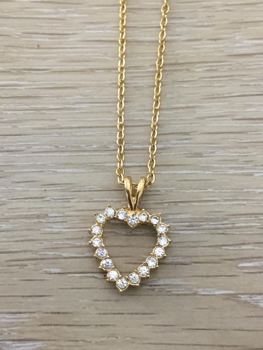 Gold tone rhinestone heart necklace
