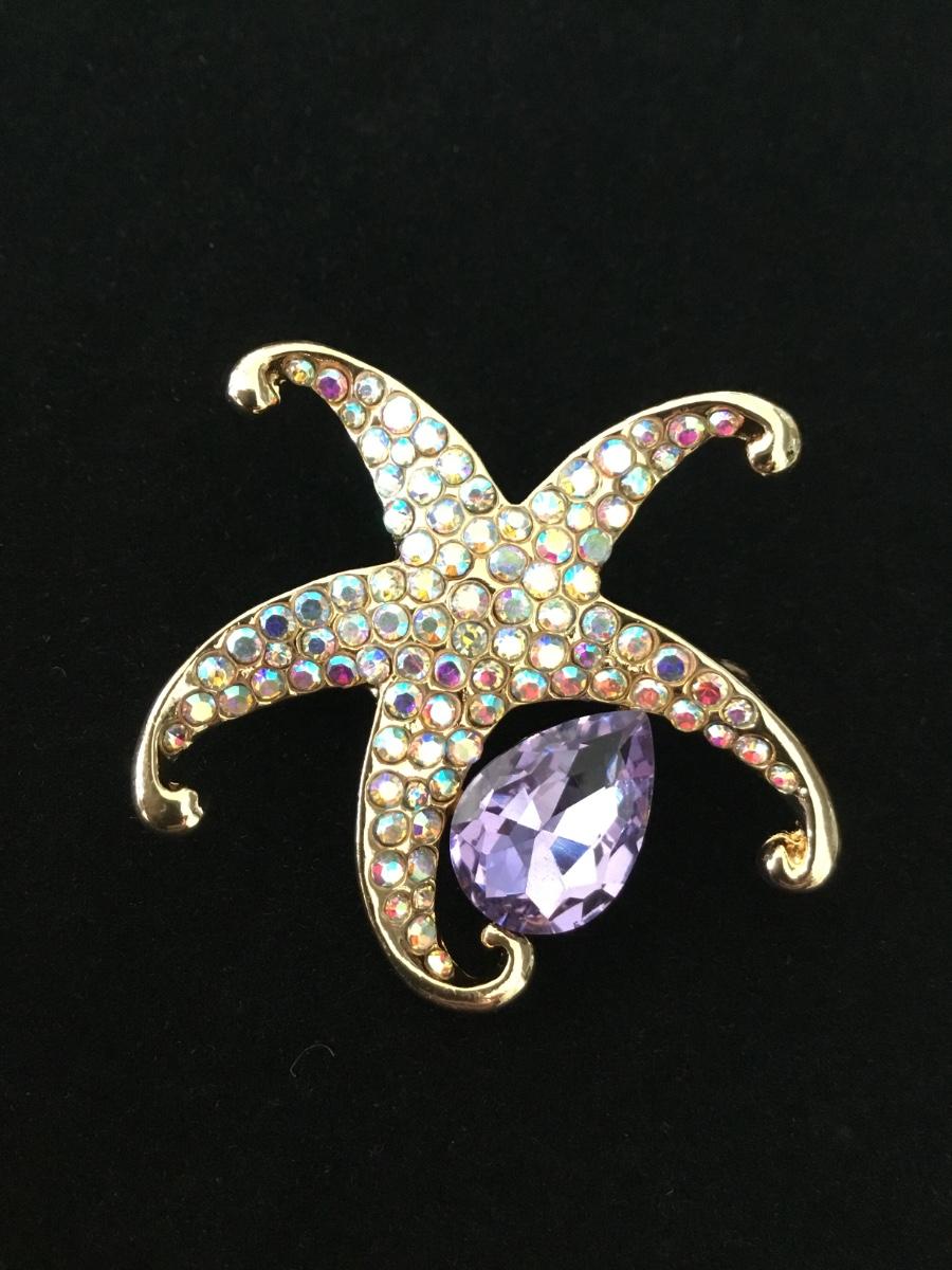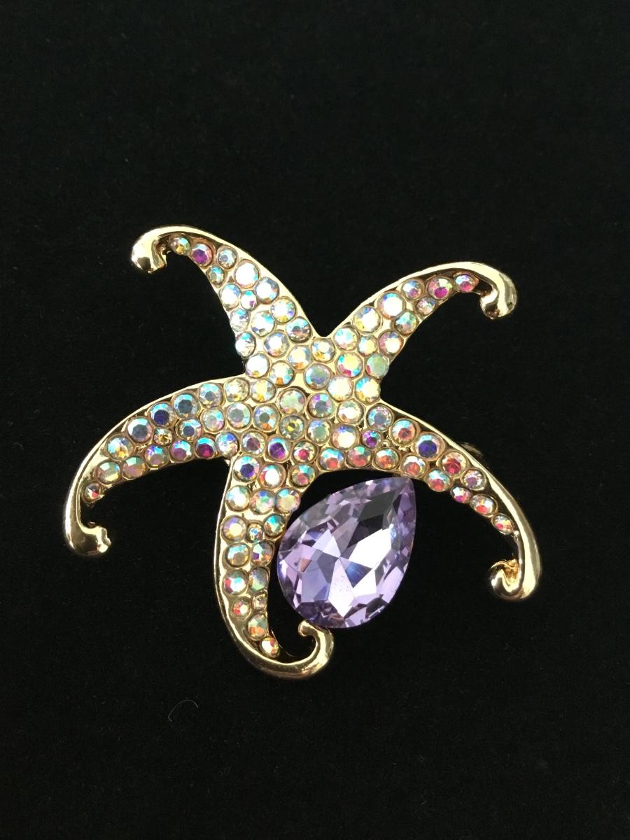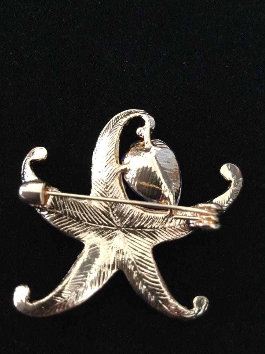 Gold tone rhinestone starfish pin