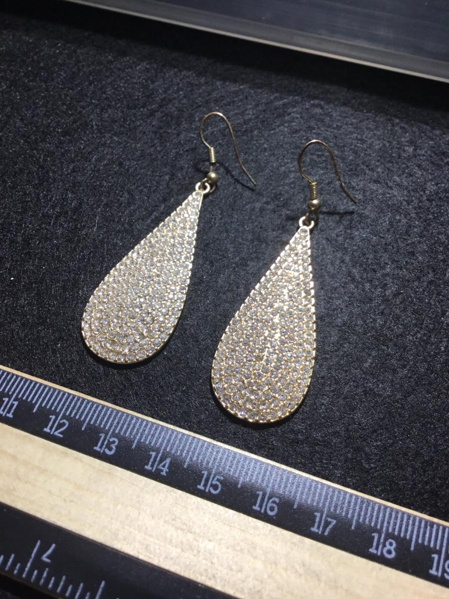 Gold tone rhinestone teardrop earrings