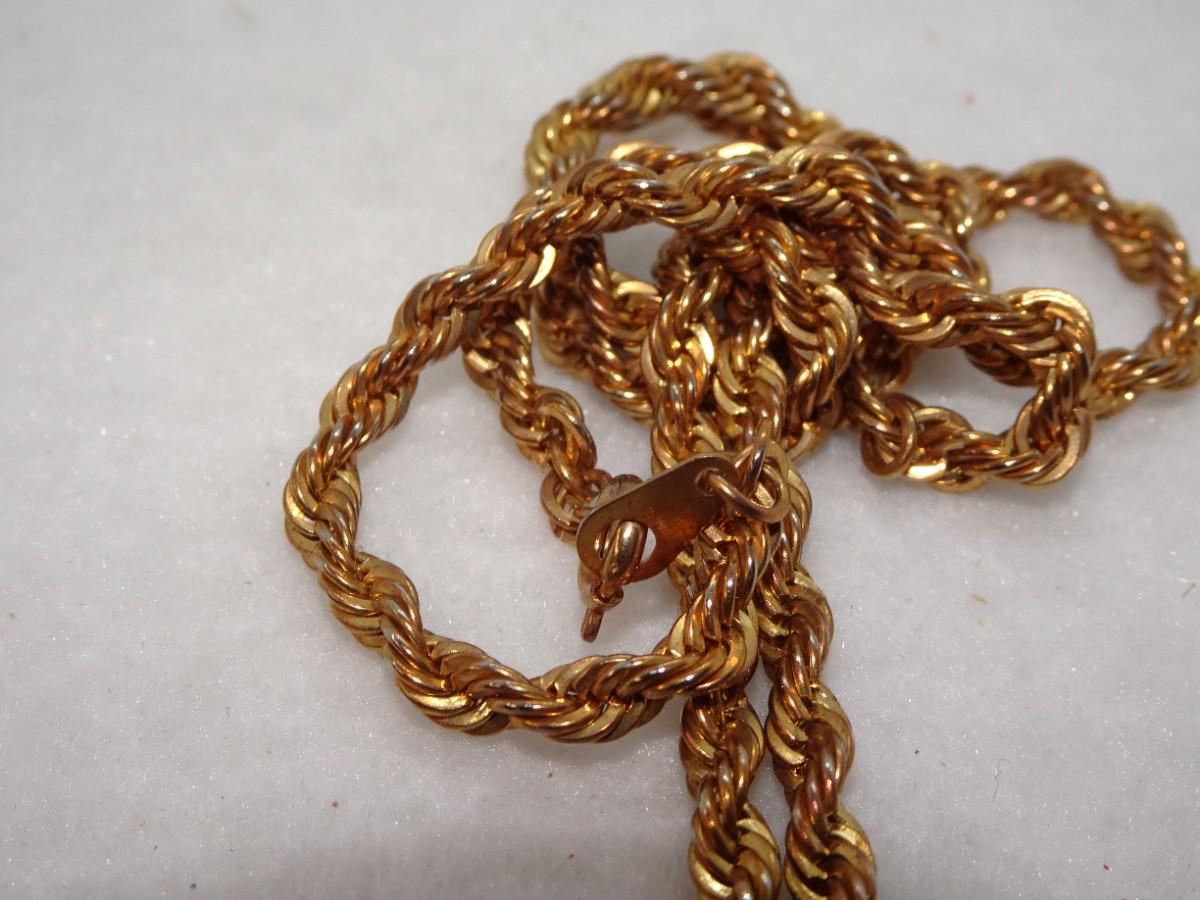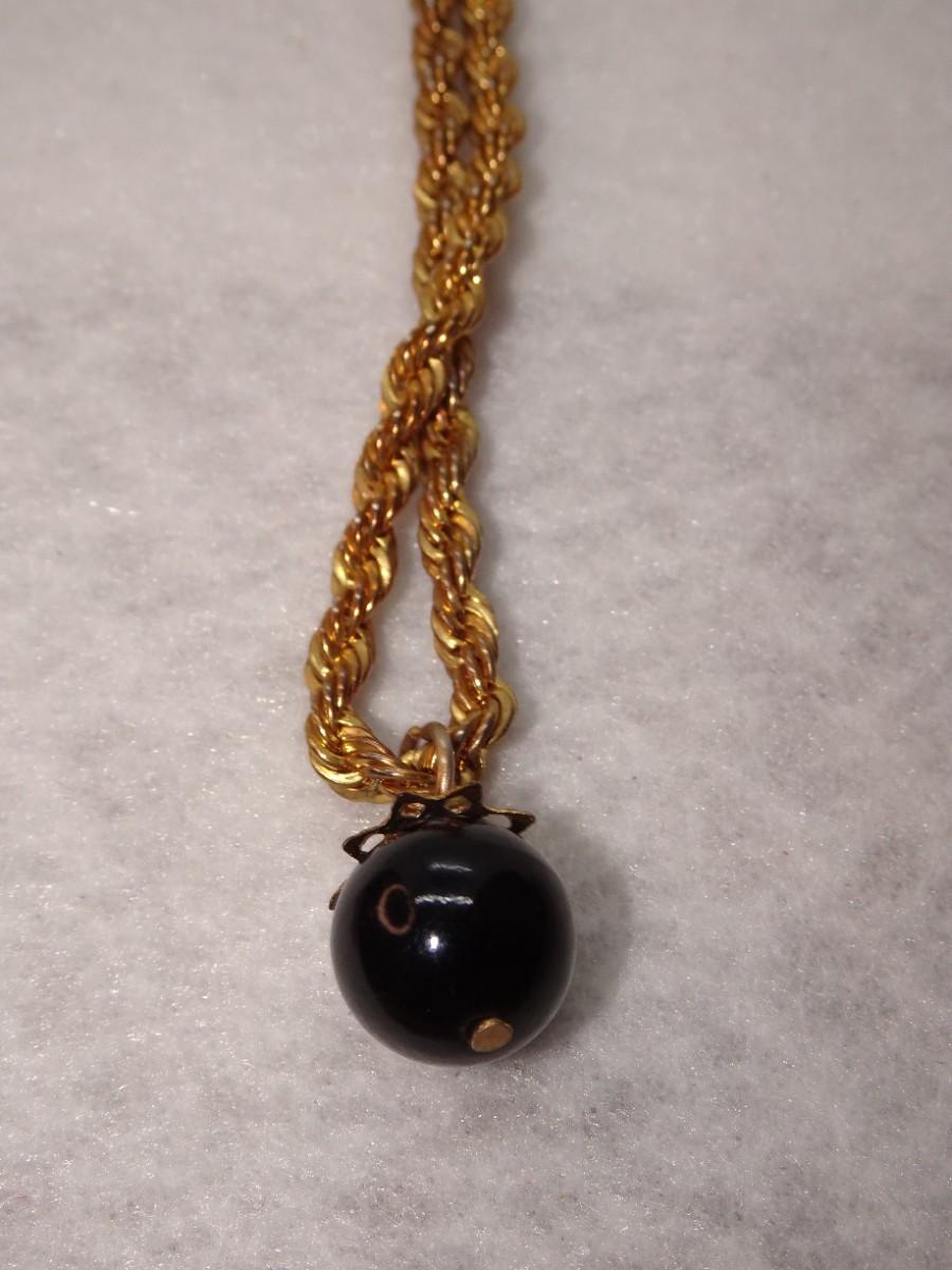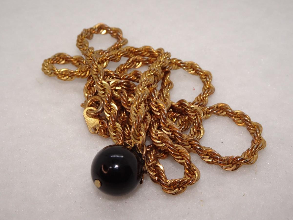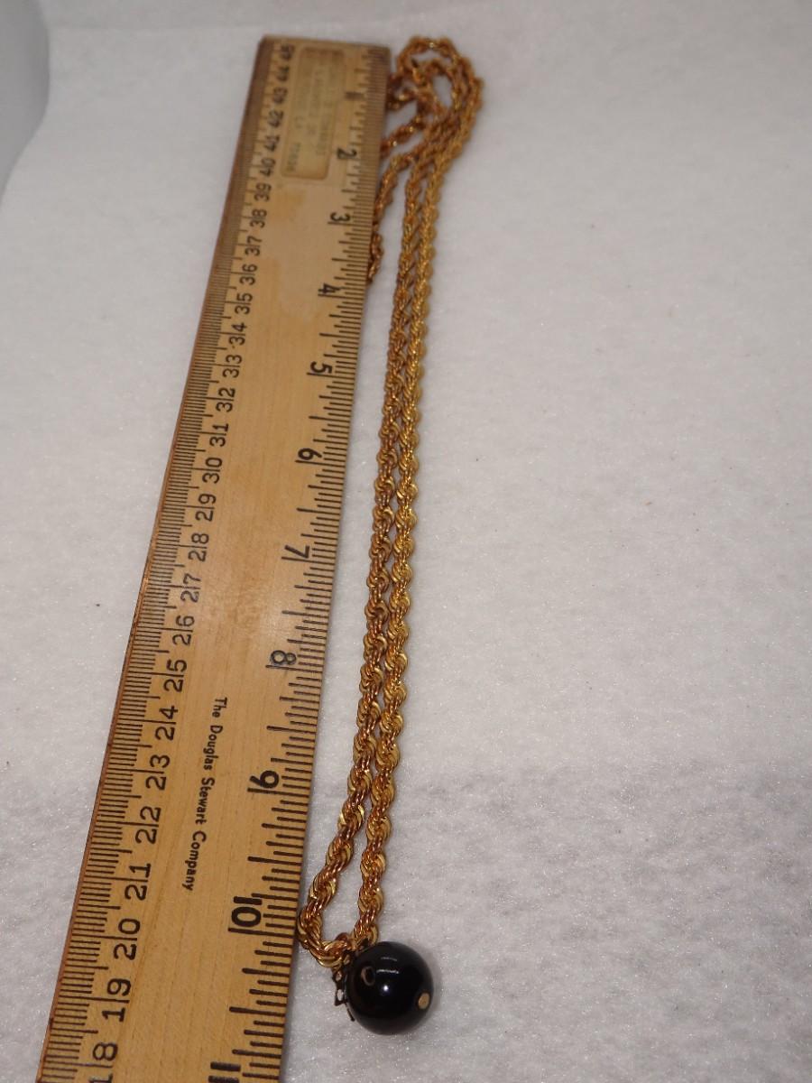 Gold Tone Rope Necklace with Black Bead