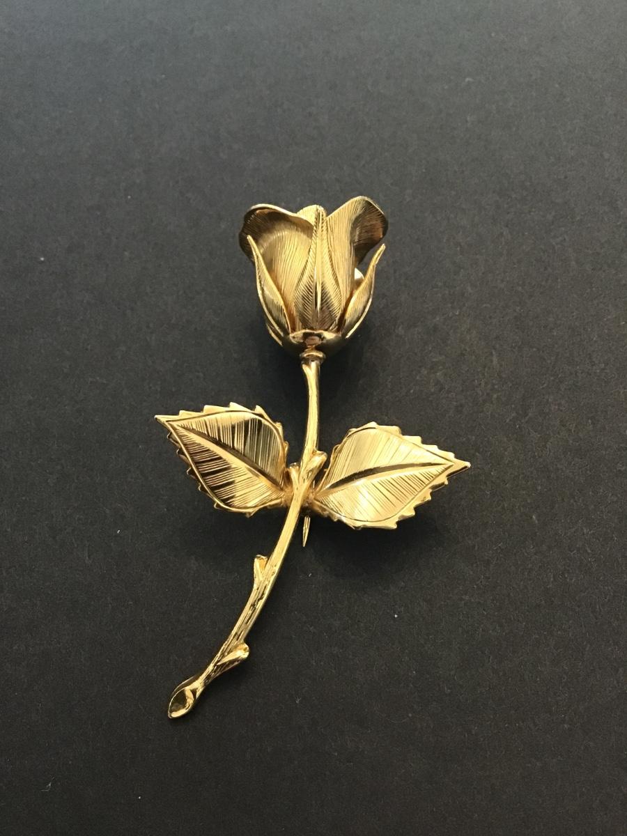 Gold tone rose brooch pin