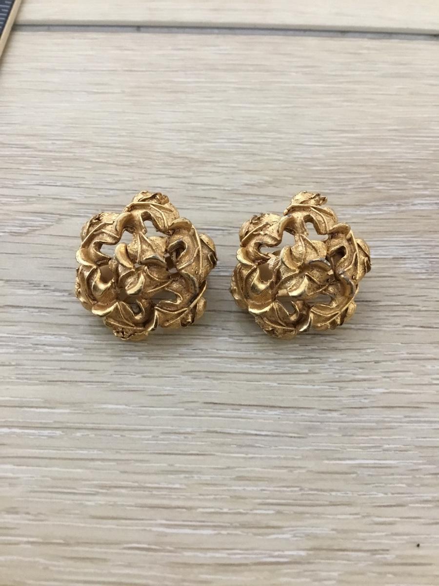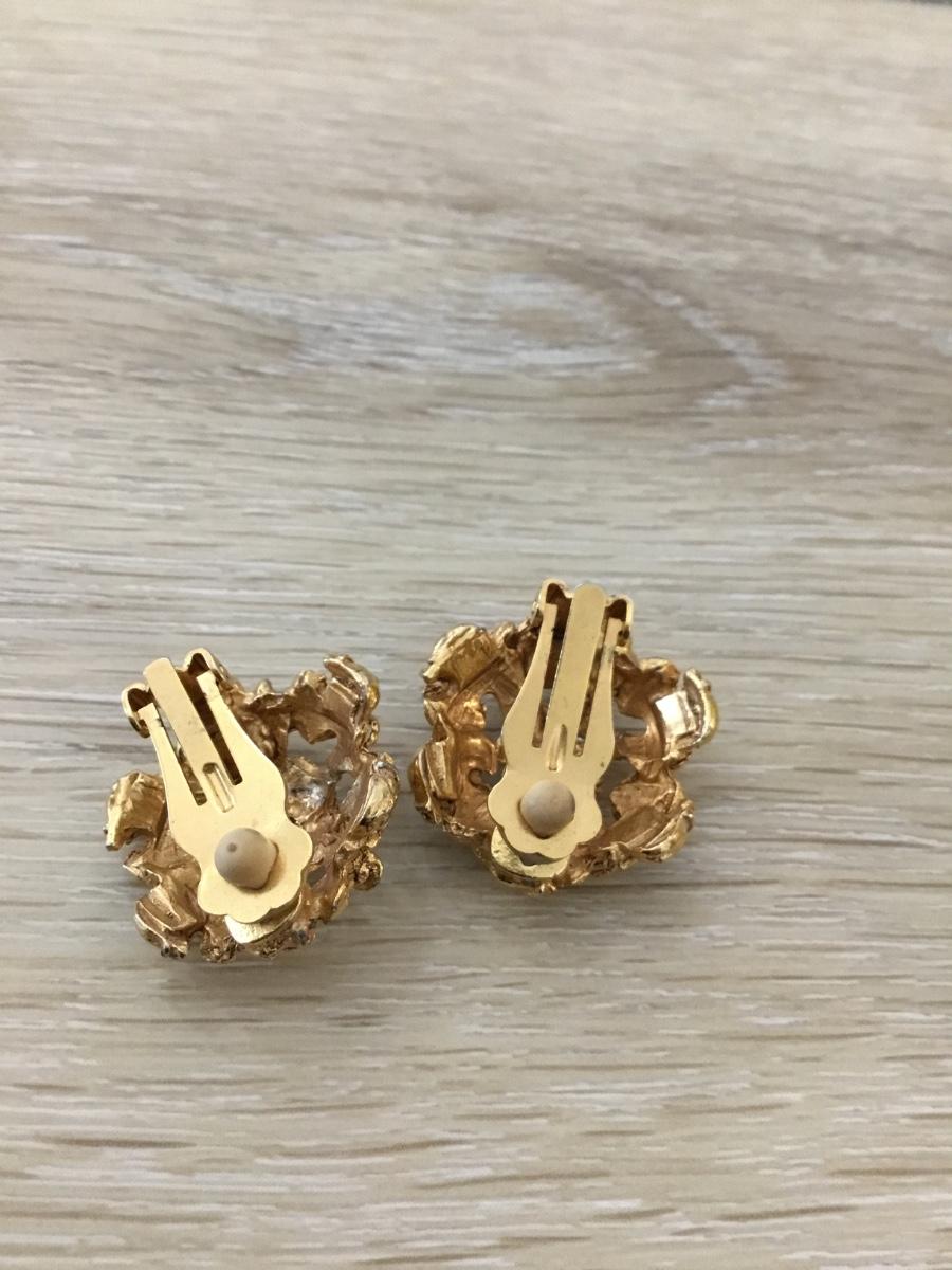 Gold tone round statement clip on earrings vintage