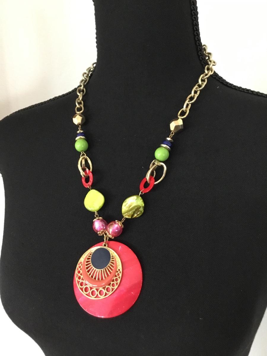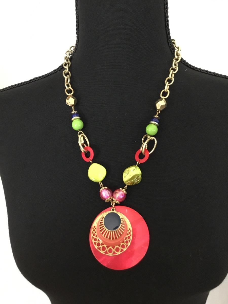 Gold tone Ruby Rd marked red acrylic fashion necklace