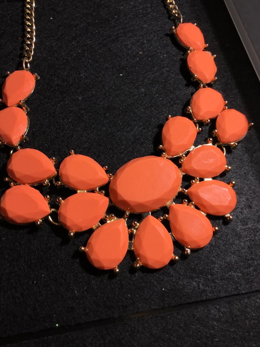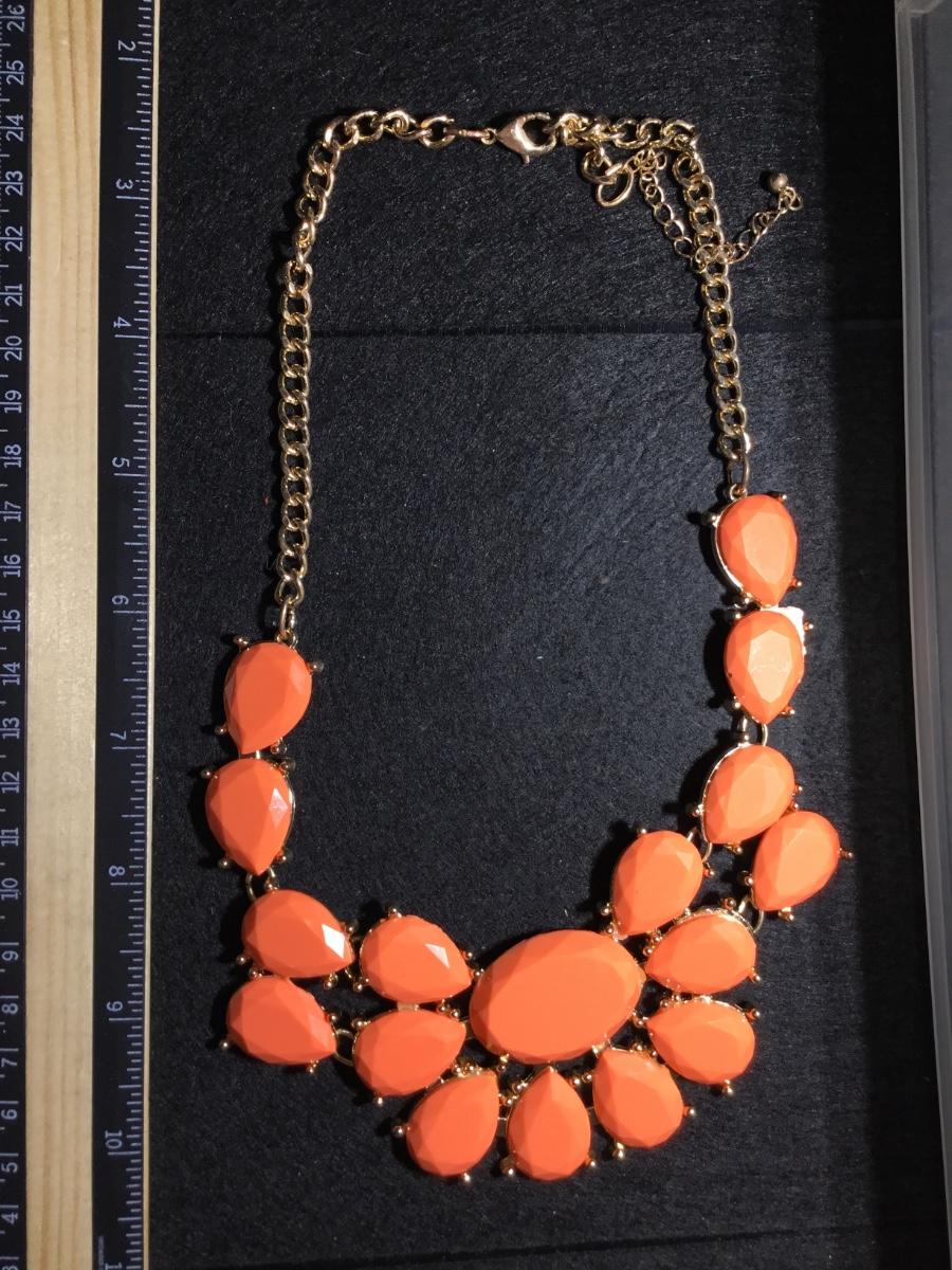 Gold tone salmon colored statement fashion collar necklace