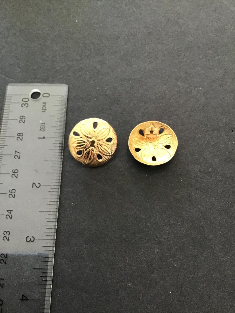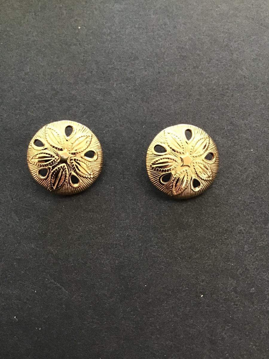 Gold tone, Sandollar, fashion, statement earrings. Please see attached photos.