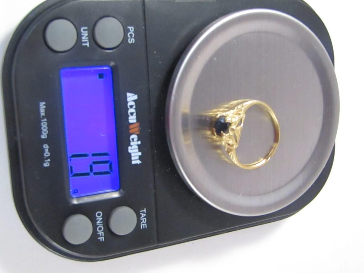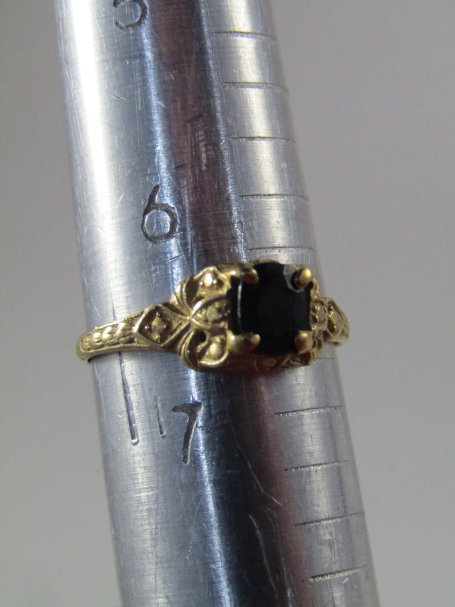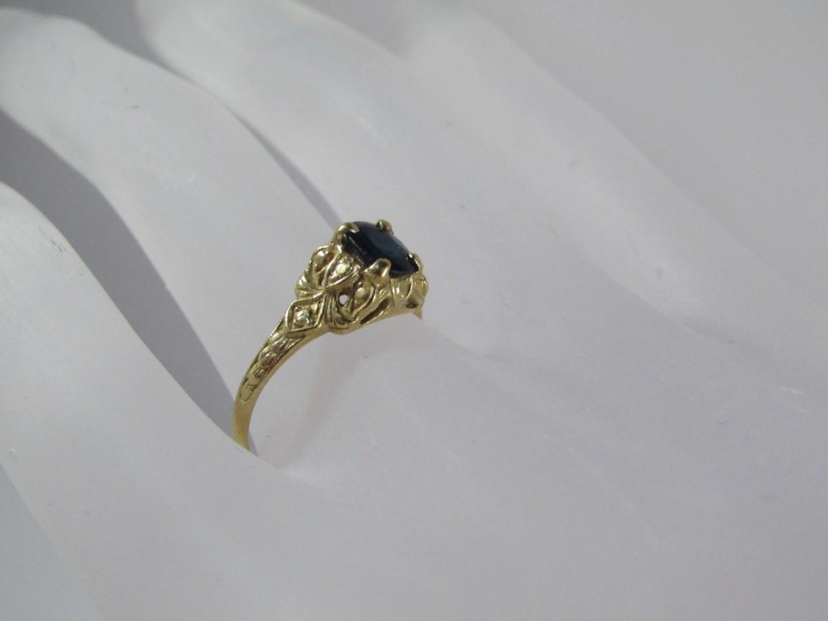 Gold Tone Sapphire Ring (Unmarked) Size 6.5