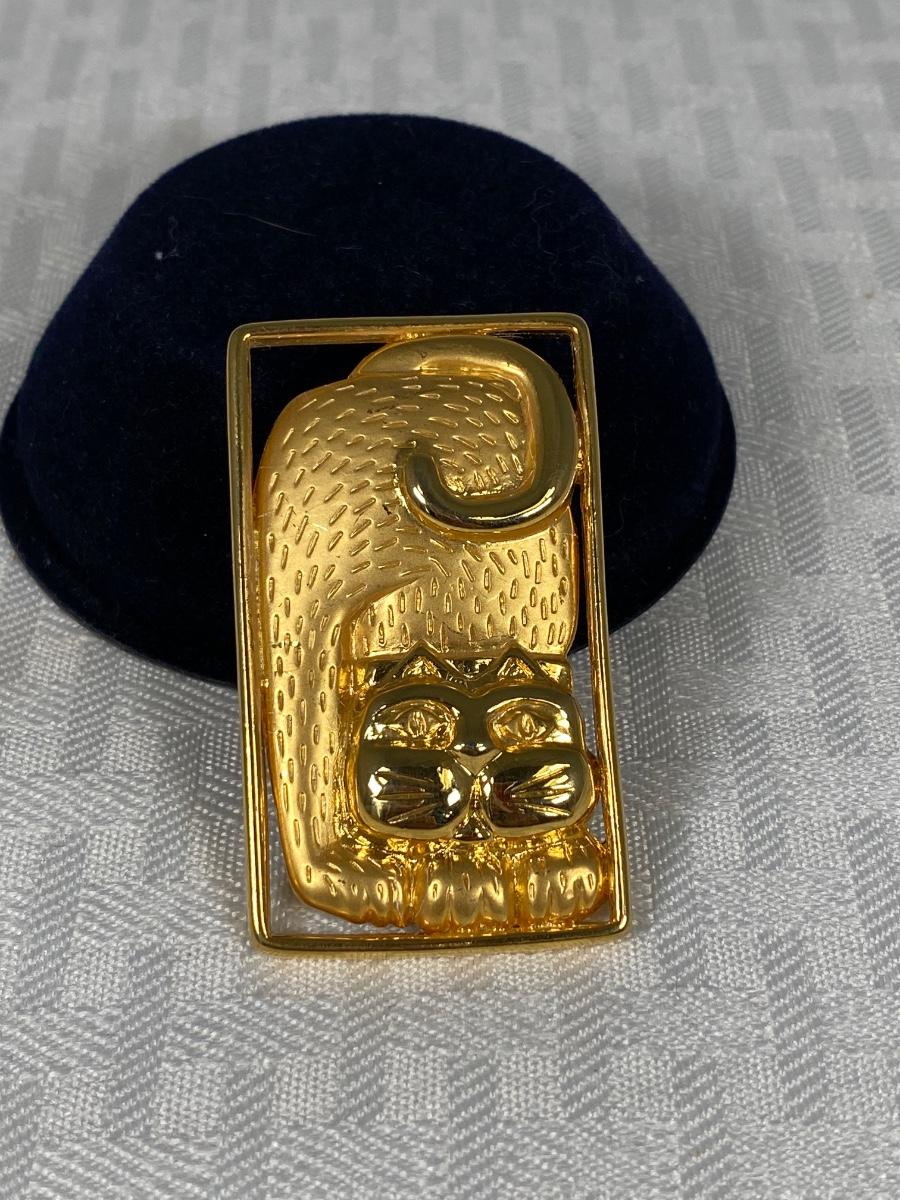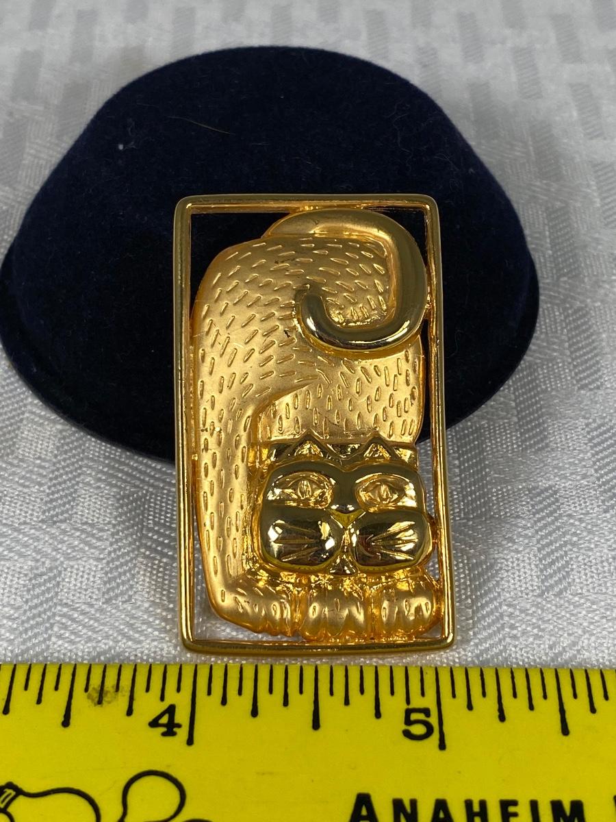 Gold Tone Shiny & Matte Cat Pin Brooch. In good condition. Unbranded.