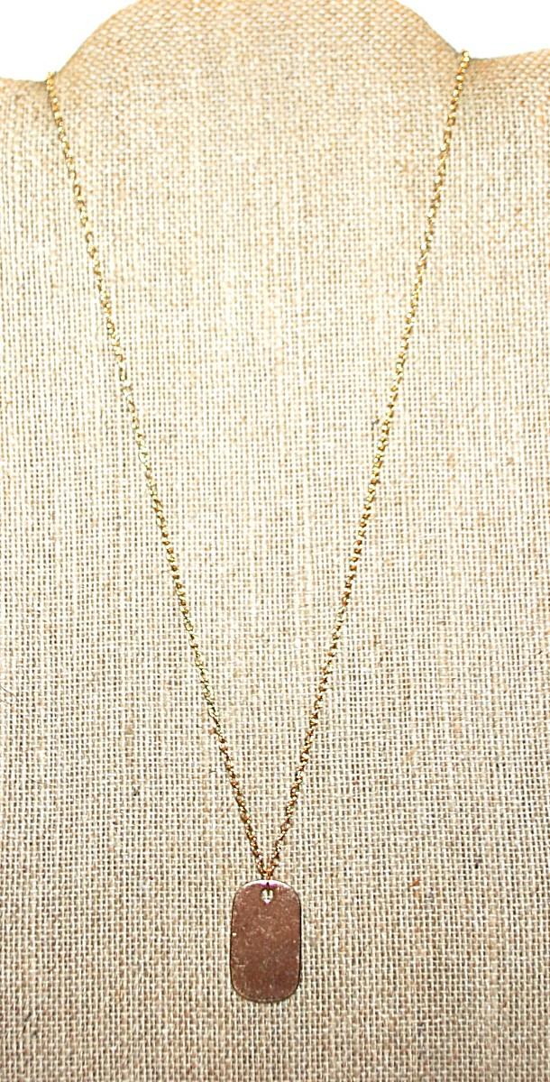 Gold Tone Shiny Oval TAG NECKLACE with Thin Gold Colored Necklace Chain and Lobster Clasp 22" L